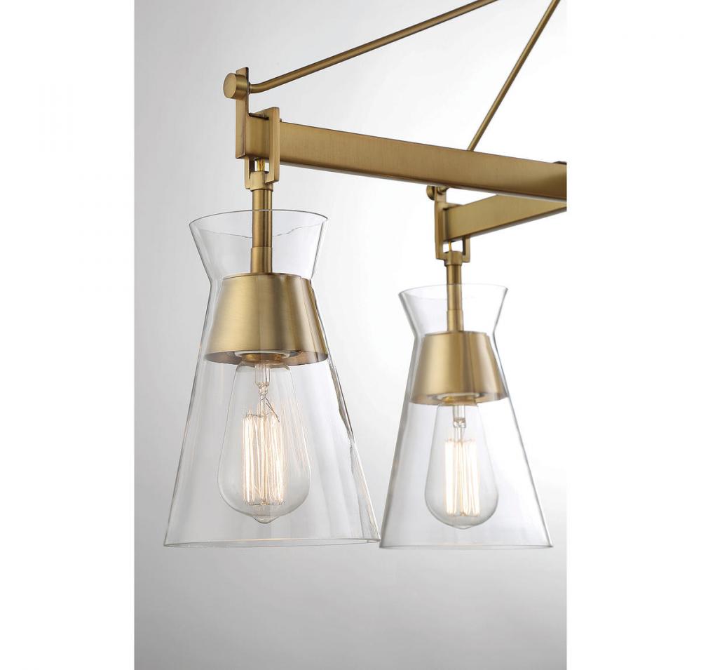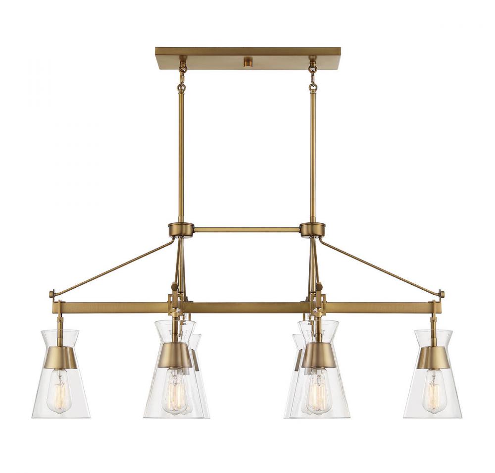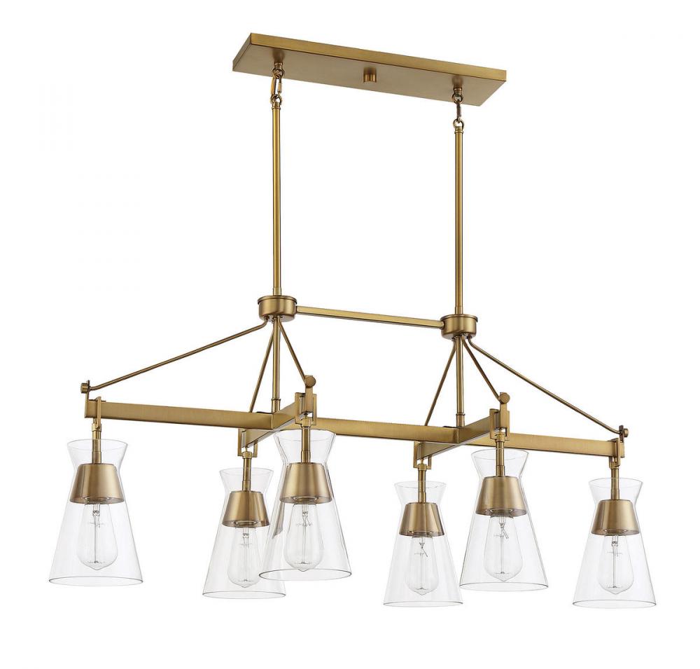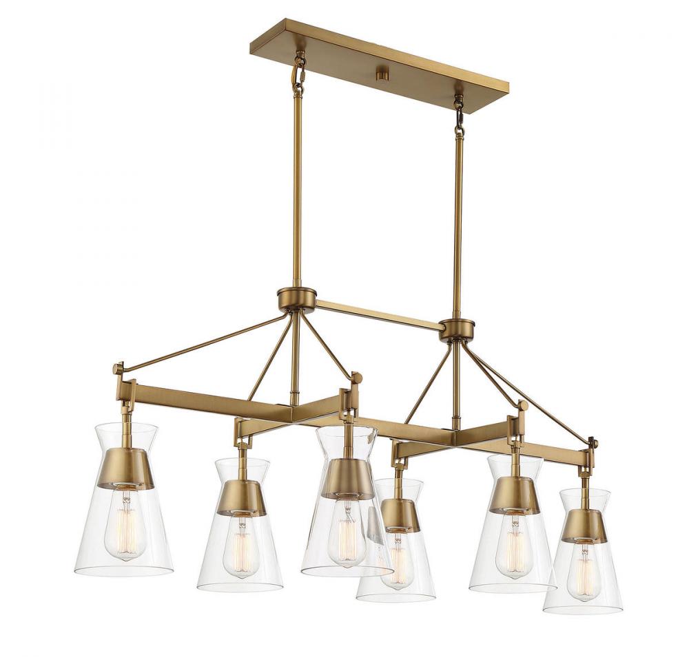 Lakewood 6-Light Linear Chandelier in Warm Brass