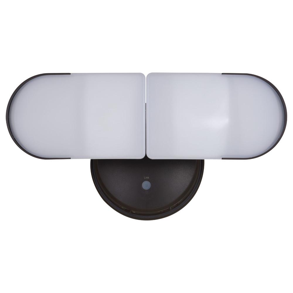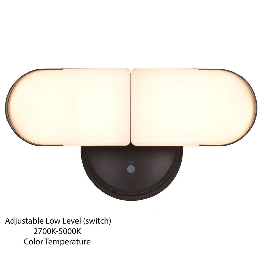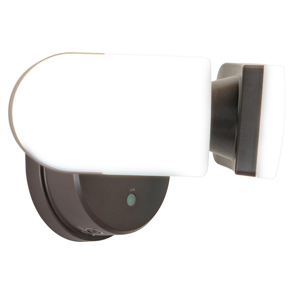 The bronze 2-light Lambda LED outdoor flood light provides the ability to connect with multiple security lights into a sync group, so if one in the group detects motion, all will engage with 5000K high level bright light. Separate purchase of T0625 required if motion detection is desired within the sync group. The modern light heads are fully adjustable and deliver 2,600 lumens to keep your home's exterior brilliantly illuminated. This sync-able security light expands the functionality, safety, and security of your home's outdoor spaces with bright, reliable light when and where it is needed.
