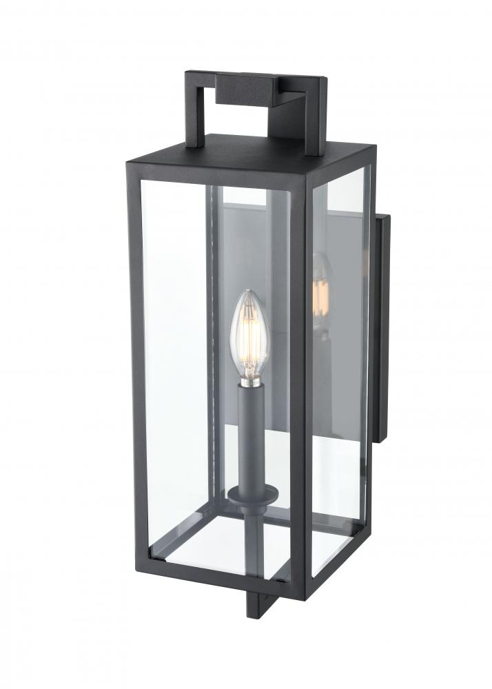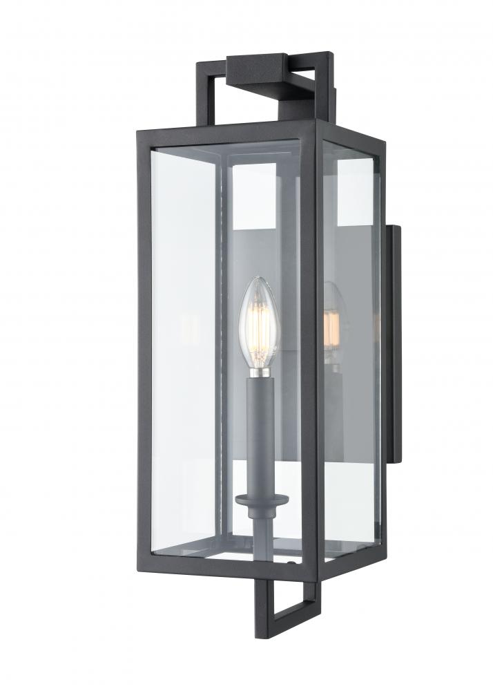 A contemporary interpretation of gothic Victorian design, the Lamont Collection of outdoor lighting is designed to make a bold visual impact on any entryway. The succinct lines of the steel framework create an elongated fixture finished in textured black. The partial, clear glass panels reveal classic-style candles in 1-light, 2-light, and 3-light options.