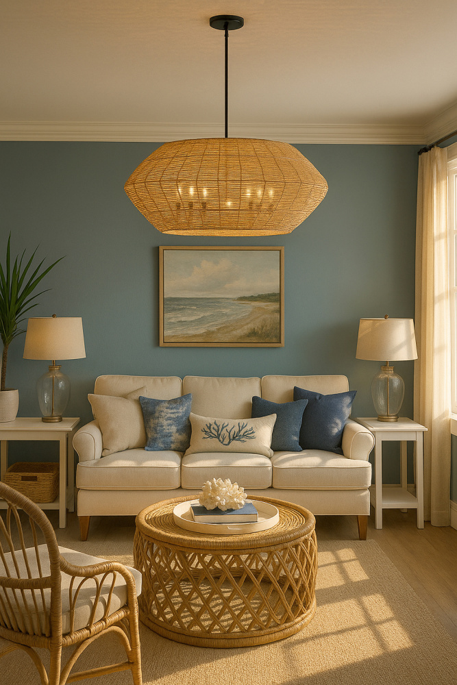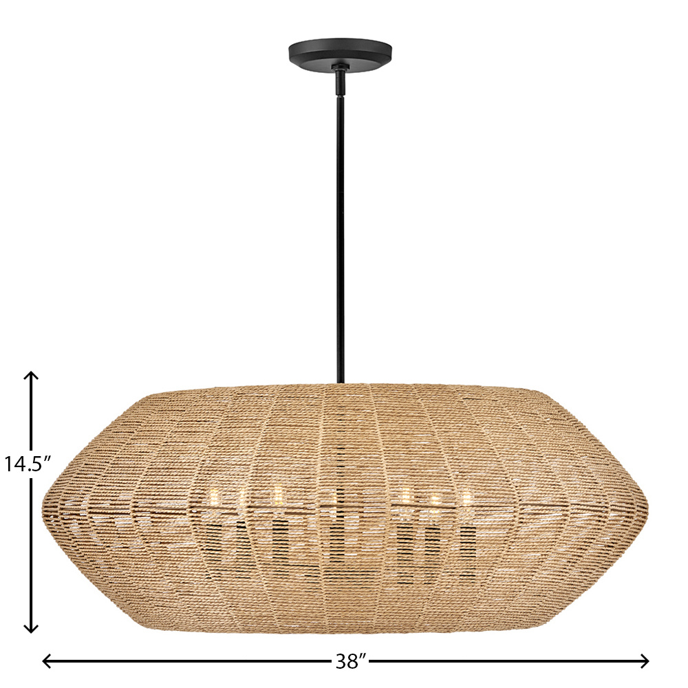 Luca's coastal vibe is permeated with a slightly exotic edge. The bold pendant showcases a robust, woven drum shade, and a full finished cluster for plenty of functional light offered in a variety of finish options. Luca is part of the Lisa McDennon Collection.