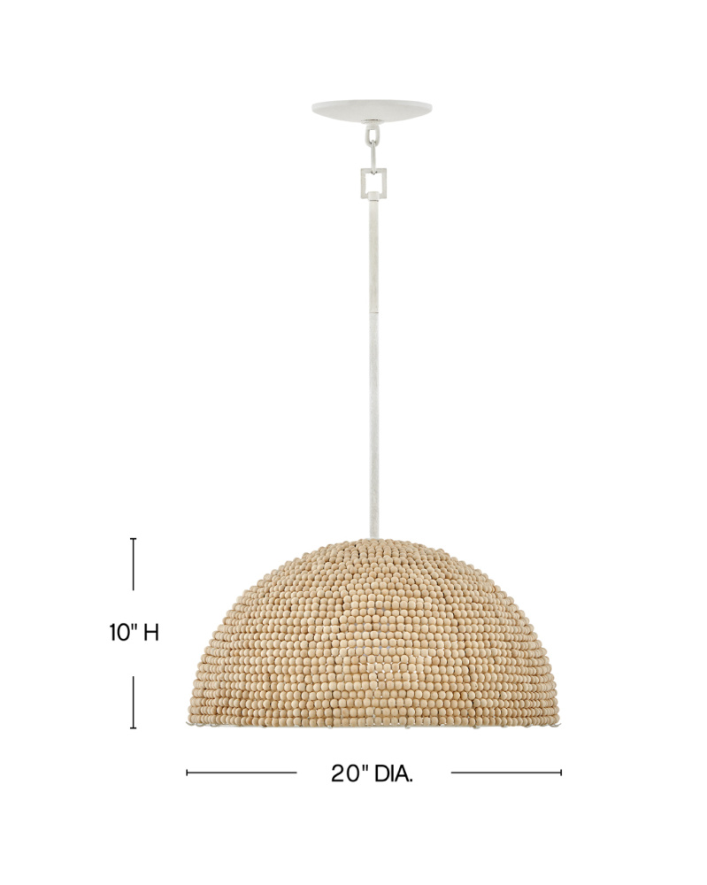A warm, textural take on a traditional dome pendant, Dalia’s details come together in all the right ways. The dome shade is adorned with wooden beads, each one hand-strung for a unique look. The graceful, oversized profile is ready to finish-off your bohemian or Scandinavian look.