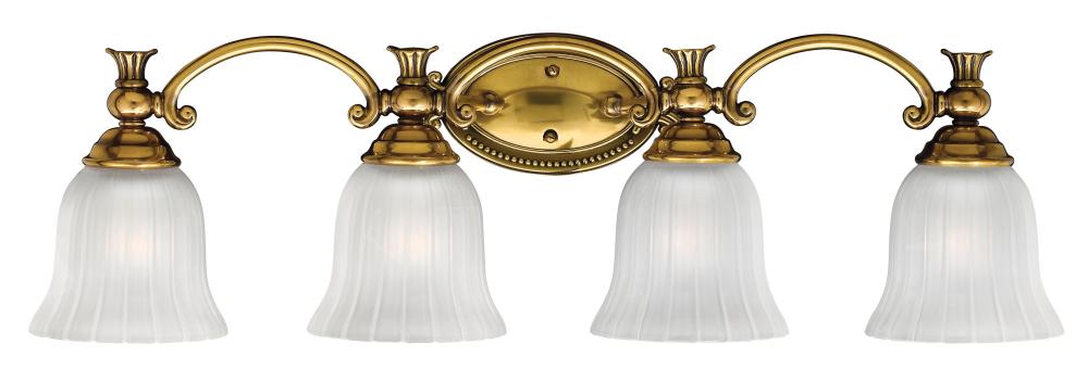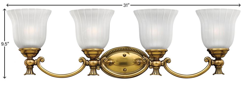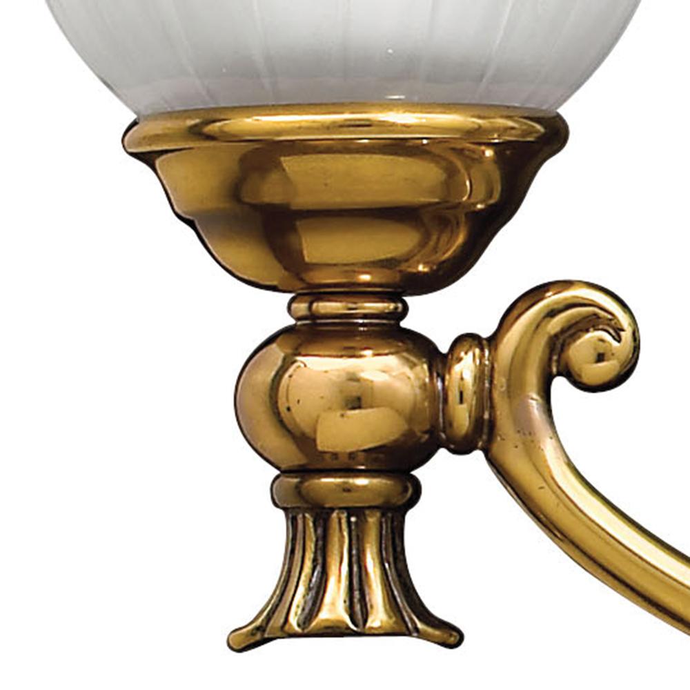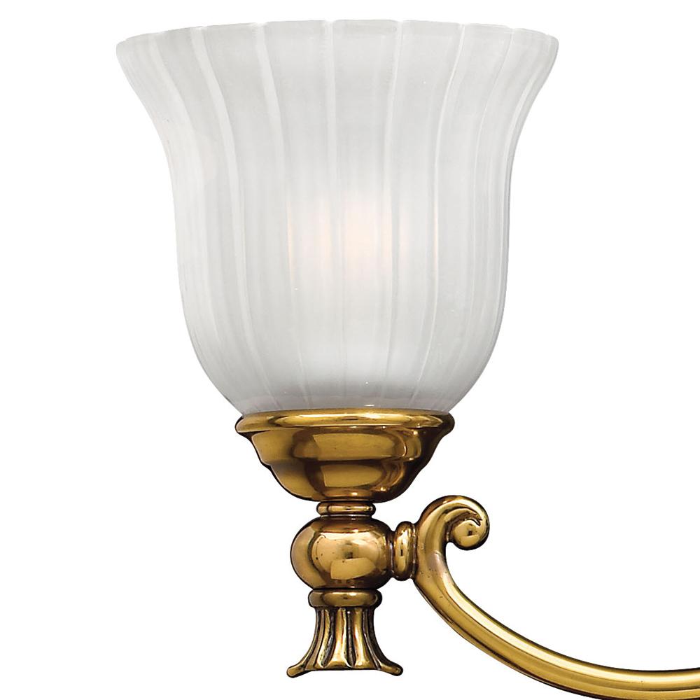 Francoise offers European elegance with decorative cast detailing in a charming Burnished Brass finish. The frosted ribbed glass beautifully contrasts with the metal finish, adding to its classical appeal.