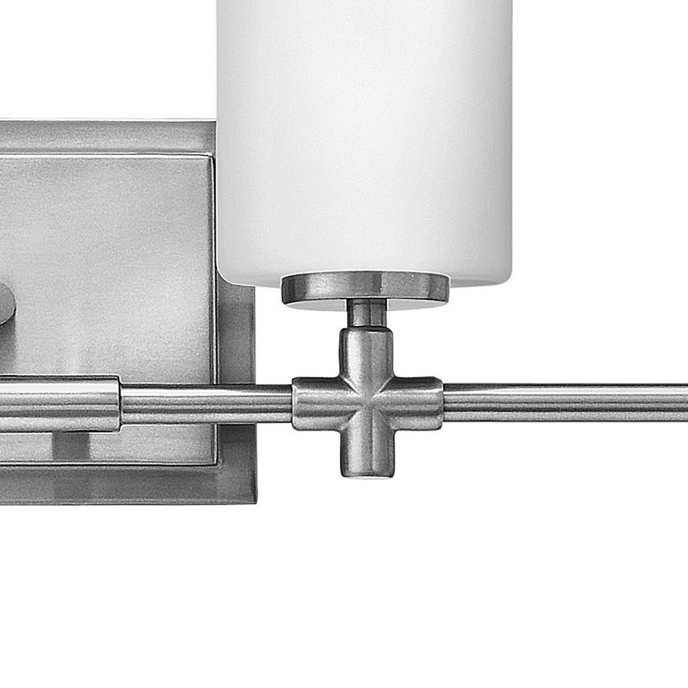 Laurel's appealing form combines both traditional and transitional design elements. Available Brushed Nickel, and features etched opal glass shades and medium base bulbing. Chic details, such as a precision die-cast cross reminiscent of a timeless faucet handle, and a cast stepped backplate, convey a lasting elegance.