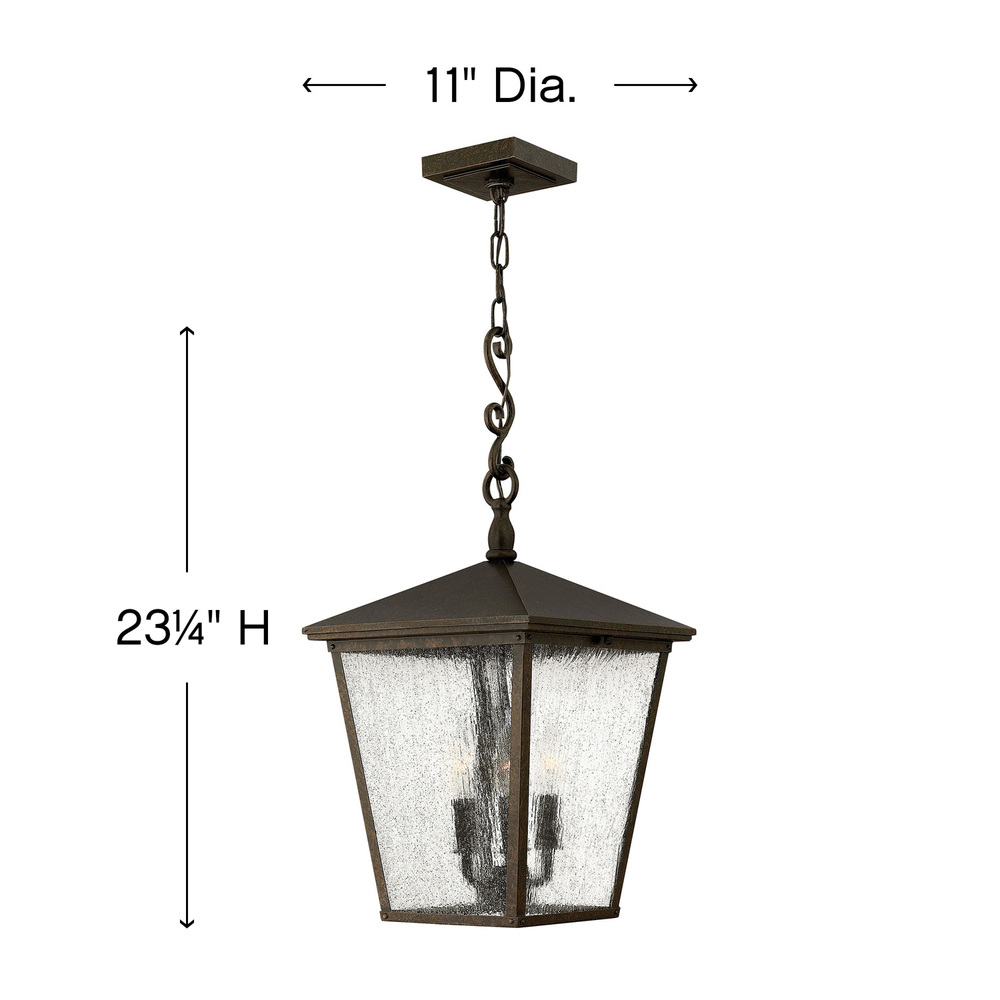 Trellis is a traditional European lantern design in an Aged Zinc finish with clear glass or Regency Bronze with clear seedy glass. The large scroll arm detail, cast loop finial and true rivet detail create a refined elegance.