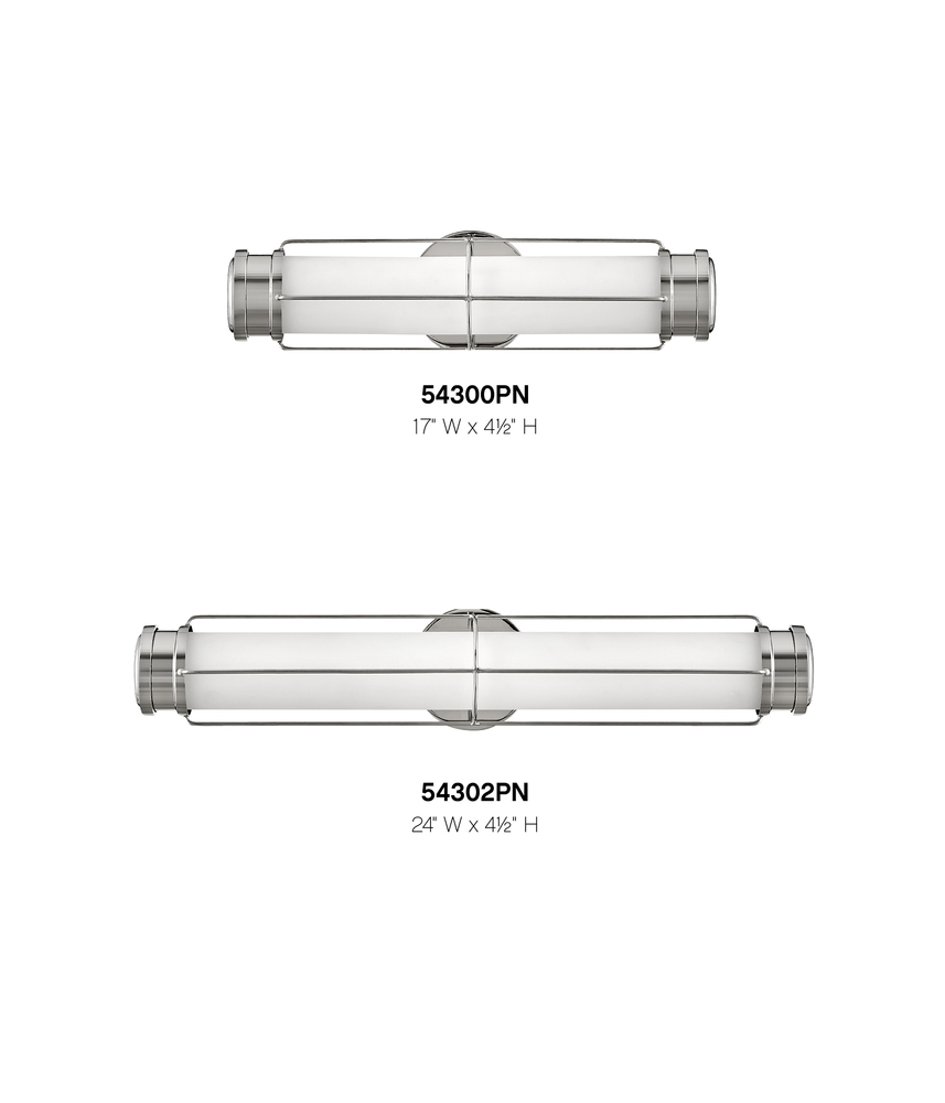 Saylor’s classic look epitomizes nautical chic. Etched opal glass, striking cross bars, and bold end caps merge with LED technology without sacrificing timeless appeal. This transitional silhouette can be mounted horizontally or vertically with an Invisimount system. Offered in three finishes, Saylor is sure to add a maritime flair to any space.