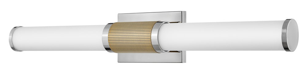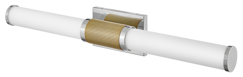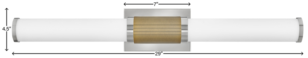 A timeless and tailored design with versatile, two-toned finish options ensures Zevi will shine among various décors. Both industrial in form and transitional in style, Zevi features a striking, signature ribbed cuff that centers an etched opal glass baton. This integrated LED sconce can be mounted vertically and horizontally and comes in three finish combinations.