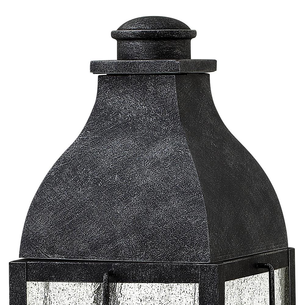 Bingham’s traditional style recalls a turn-of-the-century gas light reproduction. The vintage look is nautical in nature and recognizes Hinkley’s origins on the shores of Lake Erie. The aluminum construction features clear seedy glass and a Greystone or Sienna finish, while candelabra bulbing completes the authentic style.