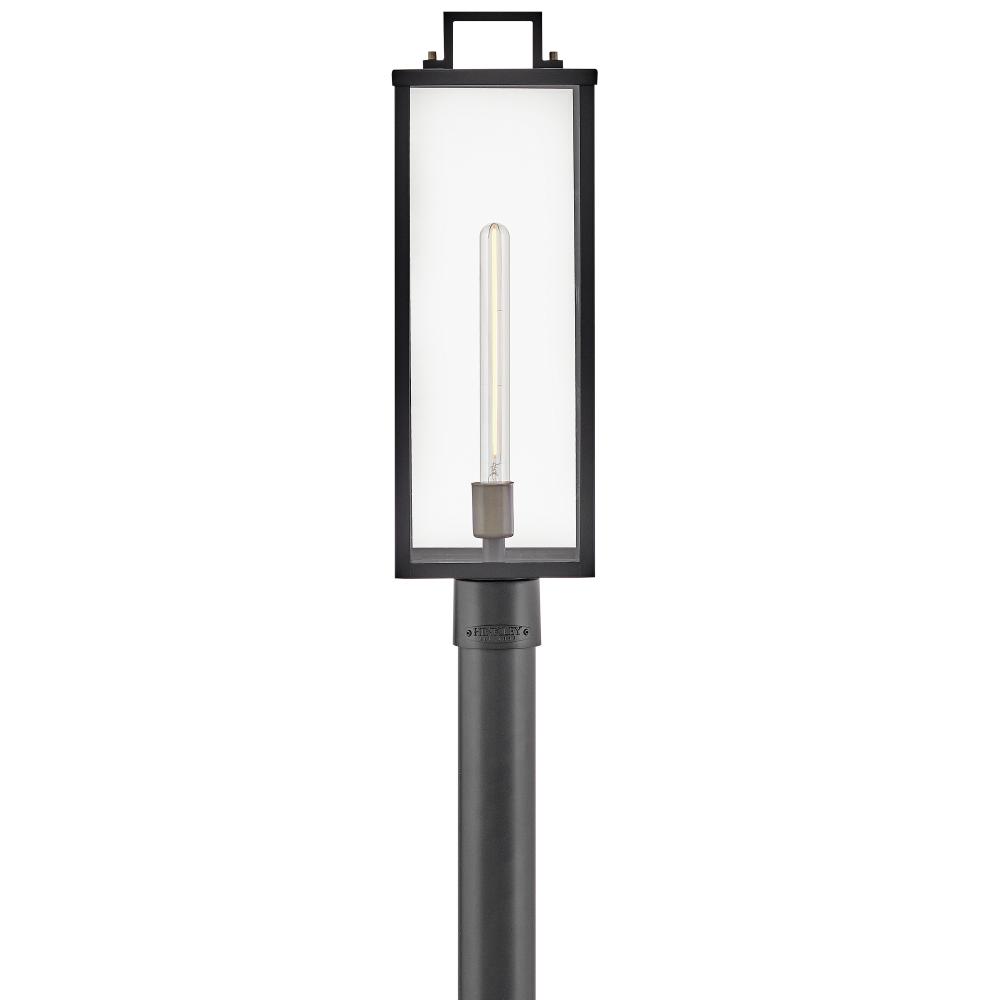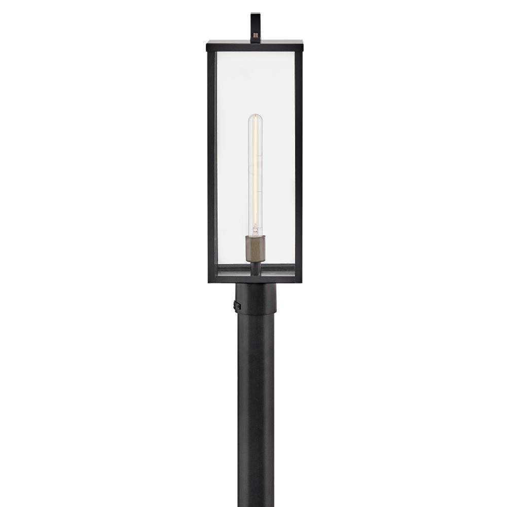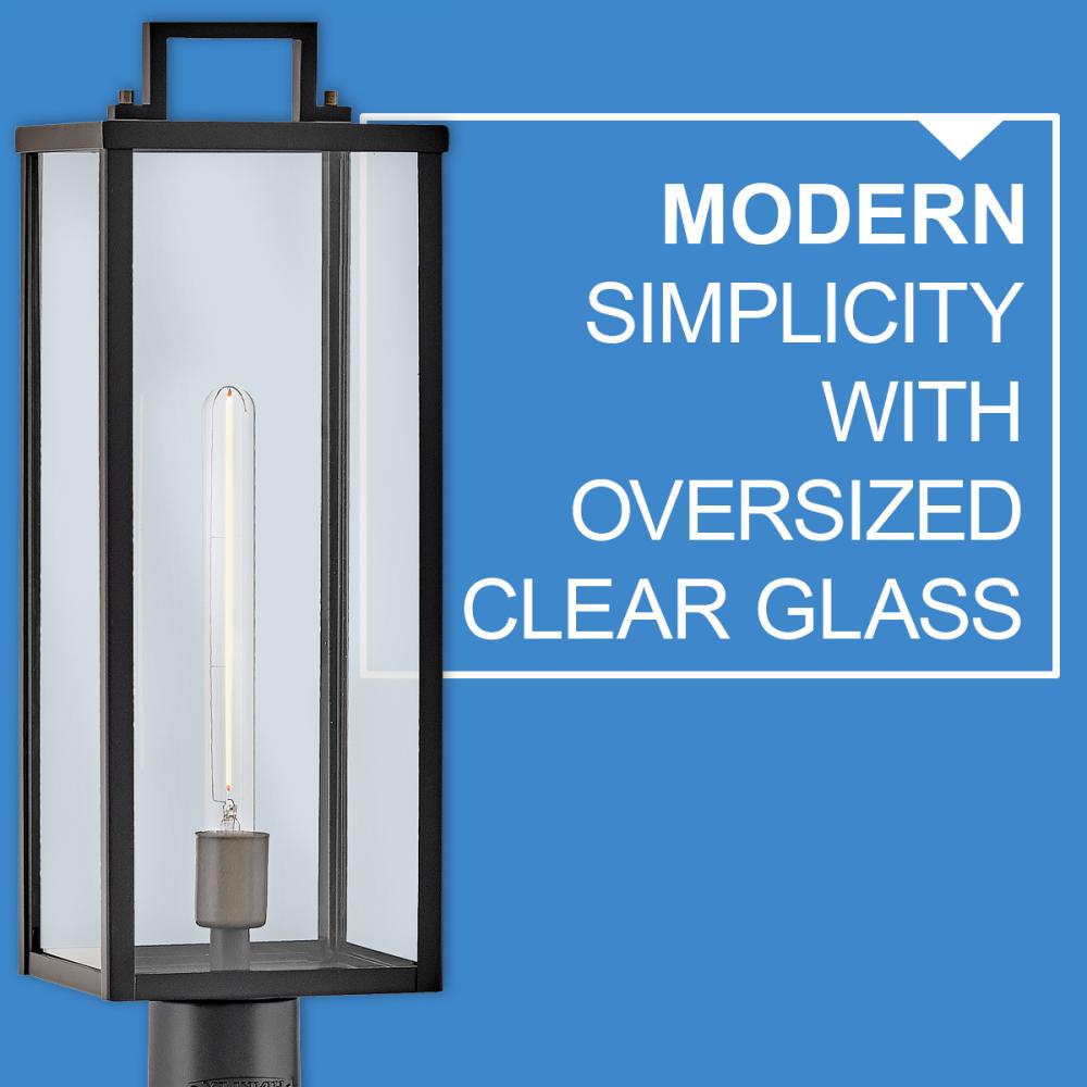 Striking and airy, Catalina breathes modern simplicity into outdoor spaces. Oversized clear glass, a unique single socket, and a two-tone Black with Burnished Bronze finish pair perfectly to present a statement-making fixture. The finishing touch is a floating effect created by the classic rectangular lantern design suspended from a top knob.