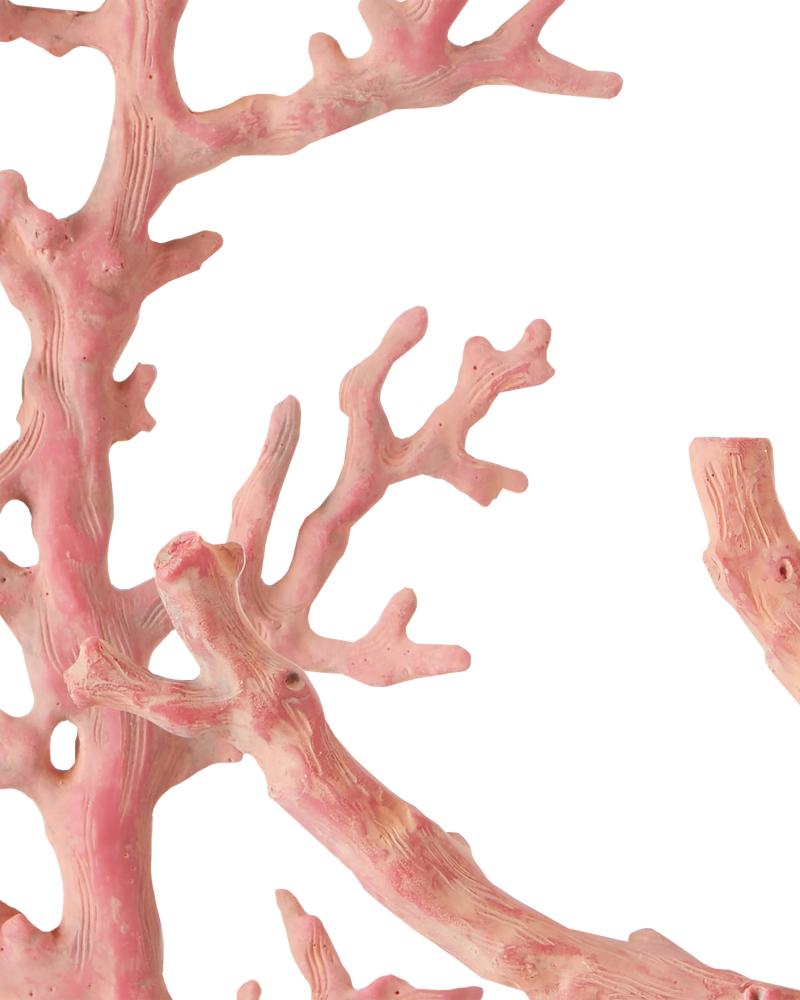 Made of composite, the Large Red Coral Branches Set fools the eye into thinking they are composed of the natural materials found at the bottom of the sea. Though they appear to be placed on stacked wood stands, these bases are made of composite as well. The red sculptures have two artisans to thank for the feeling of authenticity: the mold maker, who is central to the work; and the painter, who hand-paints the pieces to create the illusion that they are from nature.
