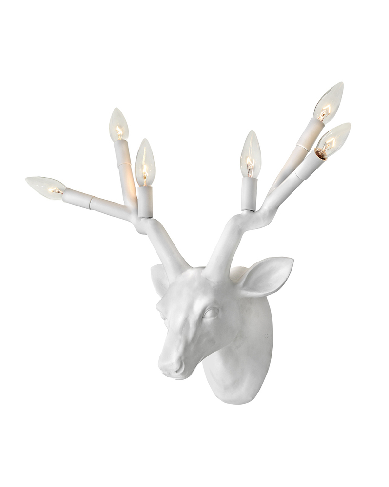 Yes, deer! A playful, contemporary take on traditional lodge décor, Stag is an over scaled sconce big on style. Featured in Chalk White or Black, Stag bounds into any space with illumination and charm all-in-one. Sconces feature a removeable black cord with on/off switch to suit anywhere you choose to roam.