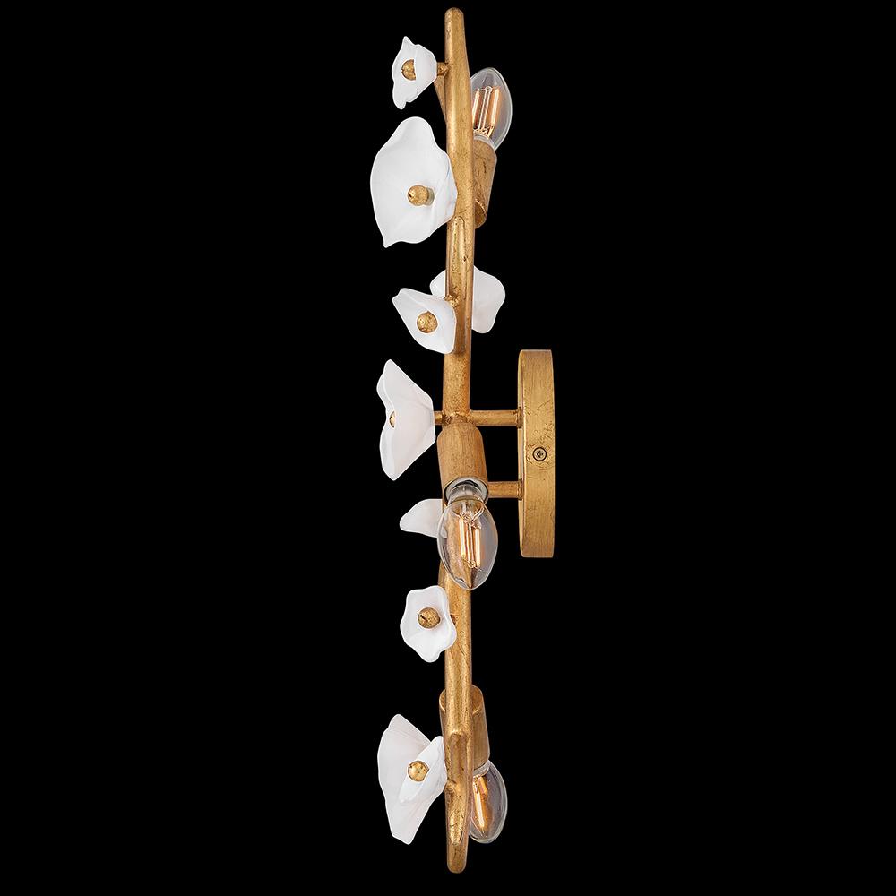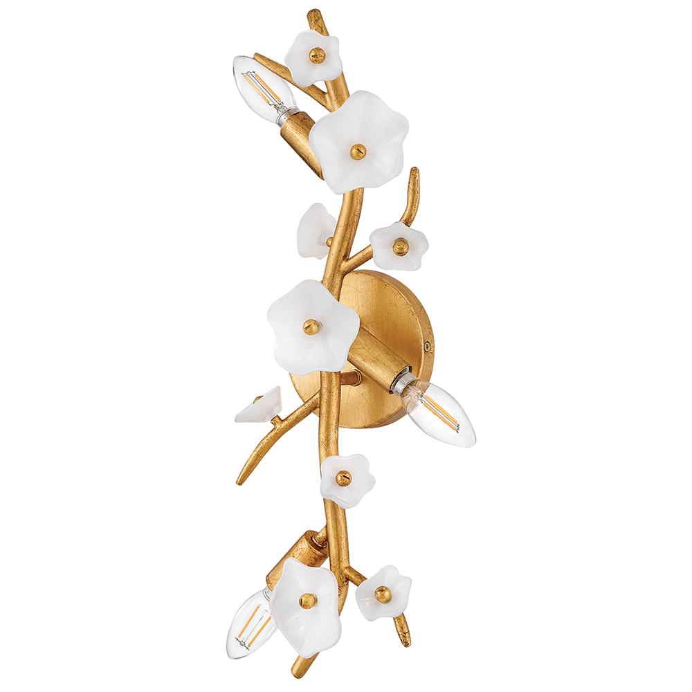 Inspired by the natural romance of annual spring blooms, Azalea’s intricate silhouette is adorned with double-layered glass blossoms crafted from clear and white glass. A Distressed brass frame complements an abundance of warm, ambient illumination from dimmable candelabra lamps.