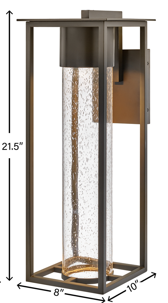 Coen is an instant favorite with timeless design featuresand a modern edge. Clear seedy glass exudes a radiant glow to make a home's exterior shine. This slender frame is constructed of composite materials, and coated with a finish that can withstand harsh elements. Available in a Black or Oil Rubbed Bronze, Coen is also Dark Sky compliant and includes an LED bulb.