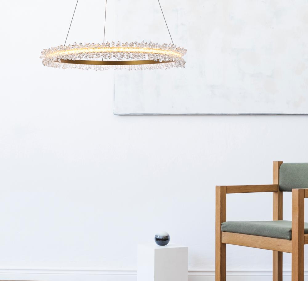 When you want dramatic, modern lighting for your home – but aren’t sure about the shape of the fixture – look into the Laurel collection. Featuring a round metal ring with radiating crystal balls attached at the ends all of which blend to create impressive visual effects.