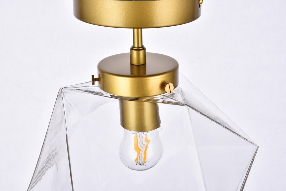 The Lawrence Collection ceiling lamp is the perfect choice if you are looking to add visual interest with functional illumination into the room. The beauty lies in its unique shape and colors. It is available in black, brass, or chrome finish with either a clear or white glass shade. This product is dimmable and requires one E26 lamp. Light bulbs not included.