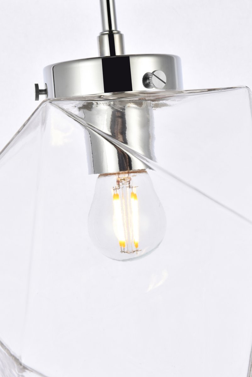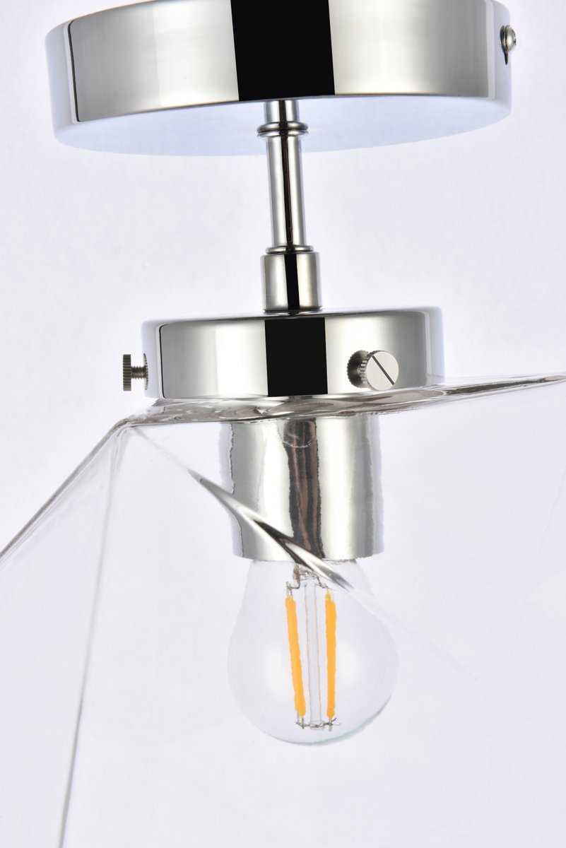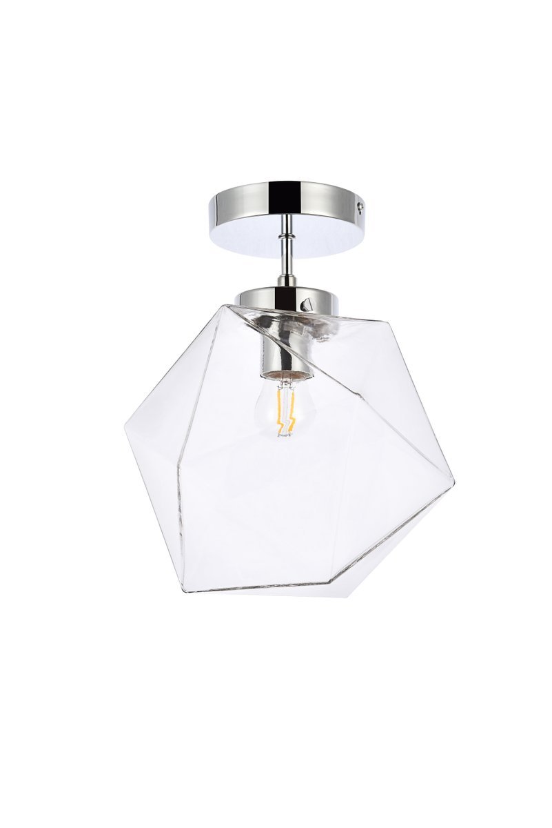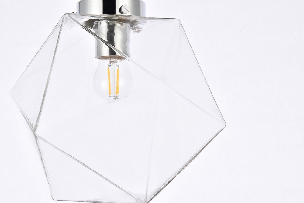 The Lawrence Collection ceiling lamp is the perfect choice if you are looking to add visual interest with functional illumination into the room. The beauty lies in its unique shape and colors. It is available in black, brass, or chrome finish with either a clear or white glass shade. This product is dimmable and requires one E26 lamp. Light bulbs not included.