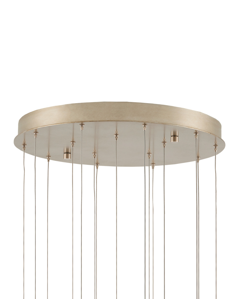 The Lazio Round 15-Light Multi-Drop Pendant has luminous shades carved from natural alabaster. The veining in the material makes each shade unique because each stone taken from the earth will have its own personality. The canopy of this piece is luminous in a painted silver finish. This fixture is among Currey & Company's multi-drop pendant collection, which includes multiple configurations.