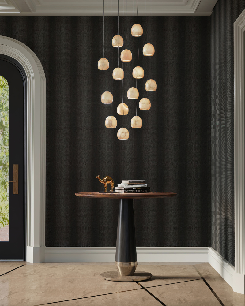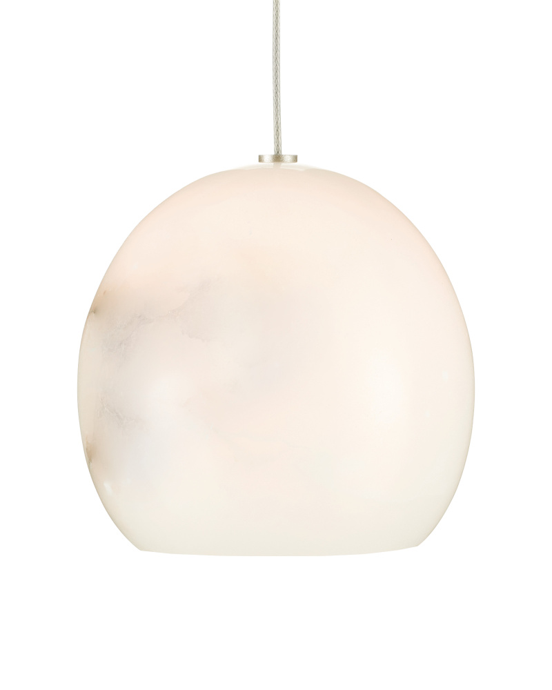 The Lazio 3-Light Multi-Drop Pendant has luminous shades carved from natural alabaster. The veining in the material makes each shade unique because each stone taken from the earth will have its own personality. The canopy of this piece is luminous in a painted silver finish. This fixture is among Currey & Company's multi-drop pendant collection, which includes multiple configurations.