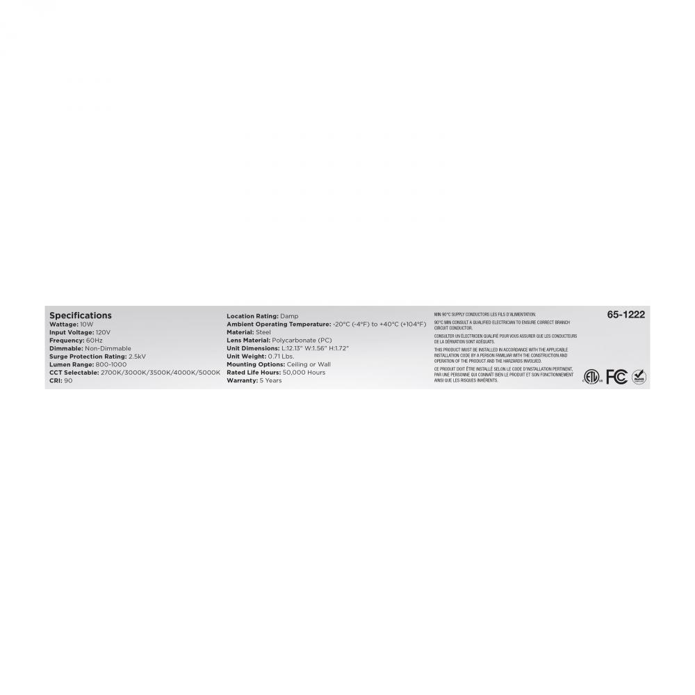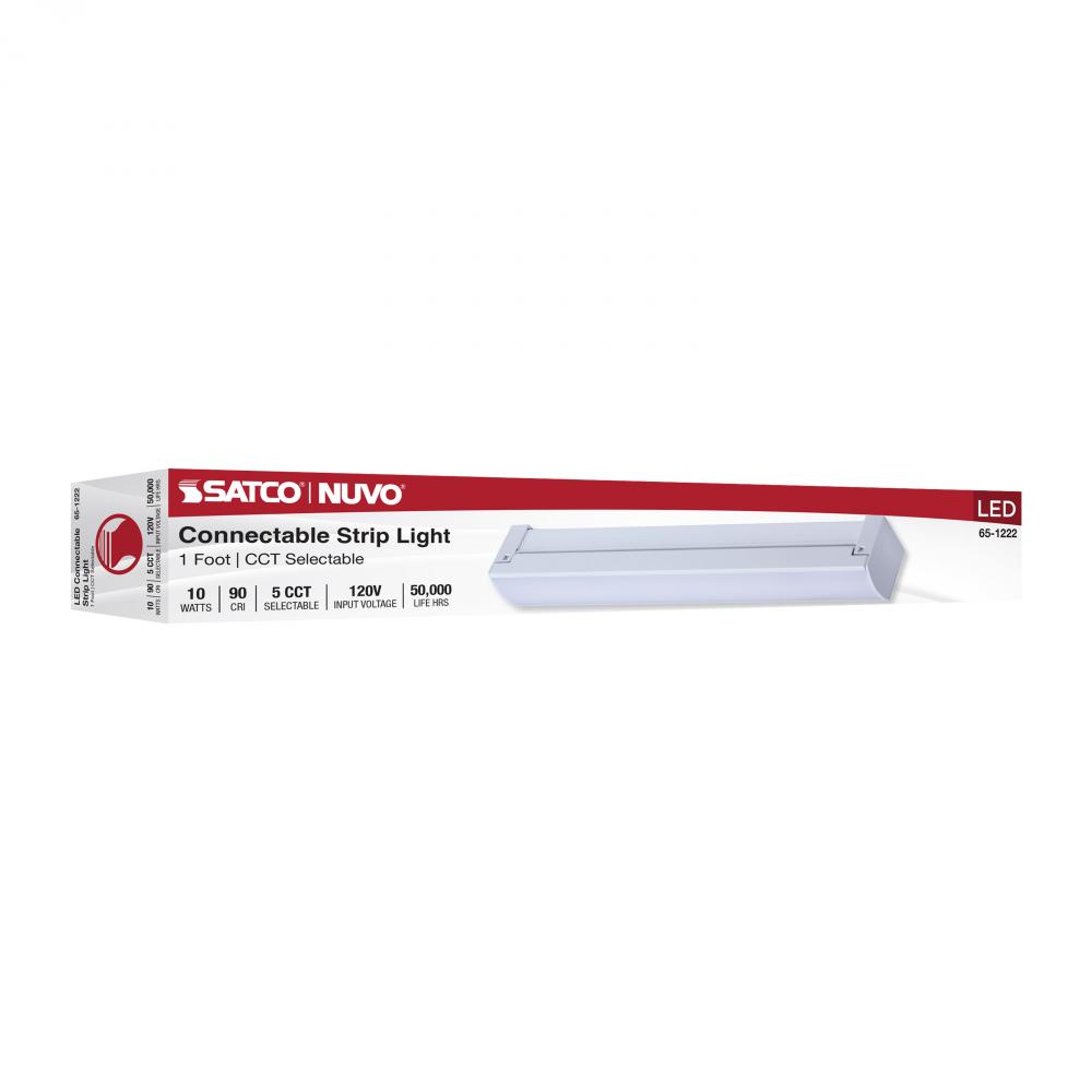 LED 1 Foot Connectable Strip Light; 10 Watts; 27K/30K/35K/40K/50K CCT Selectable; White Finish; 120