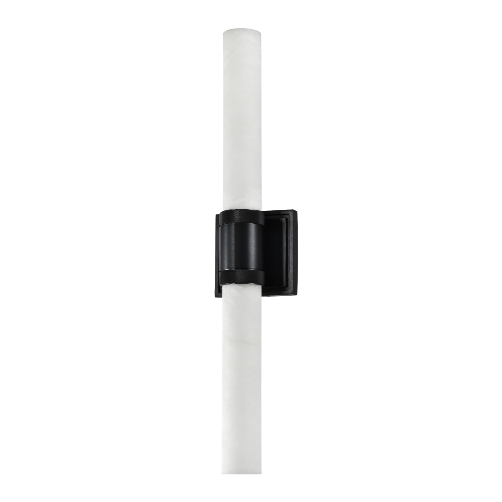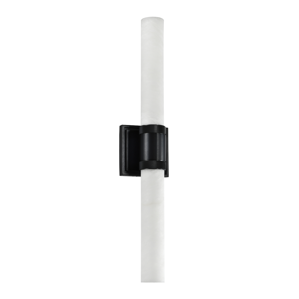 LED 3CCT Duo Wall Sconce, 12" Spanish Alabaster Shade and Satin Brushed Black Finish