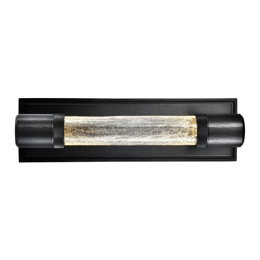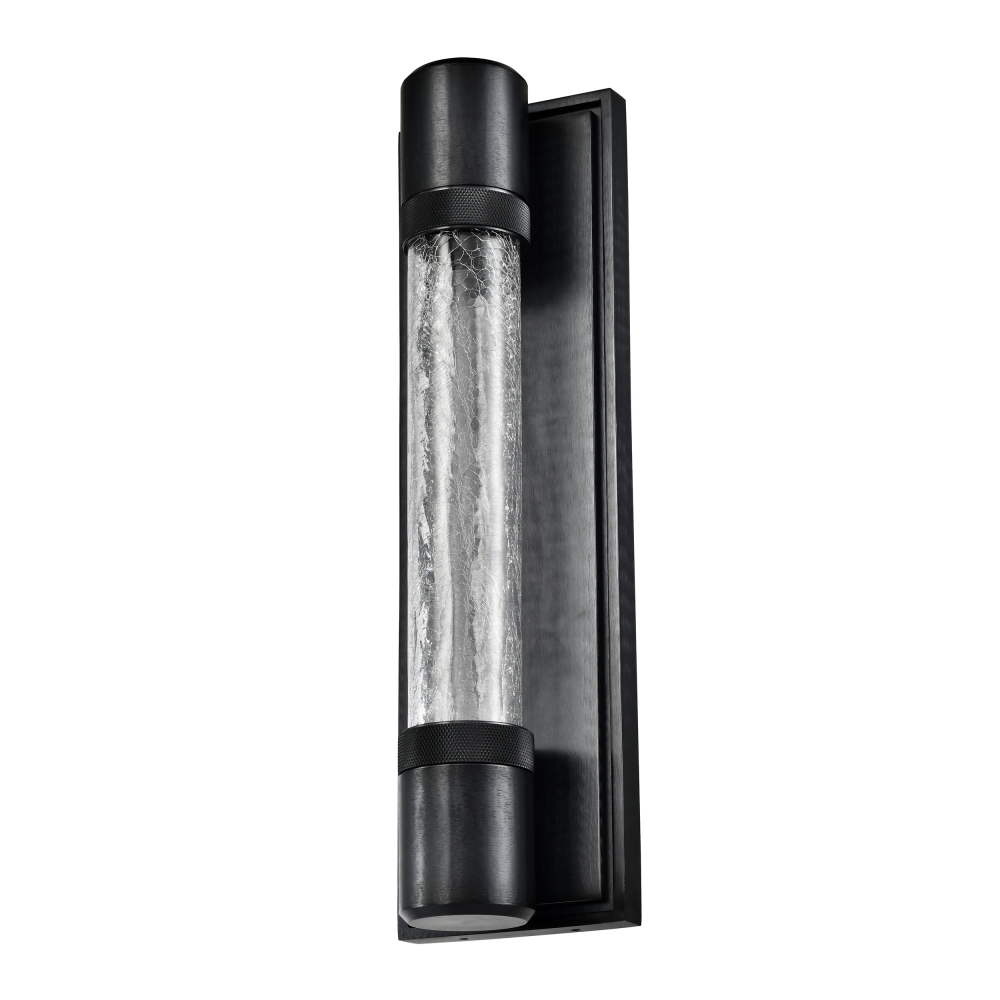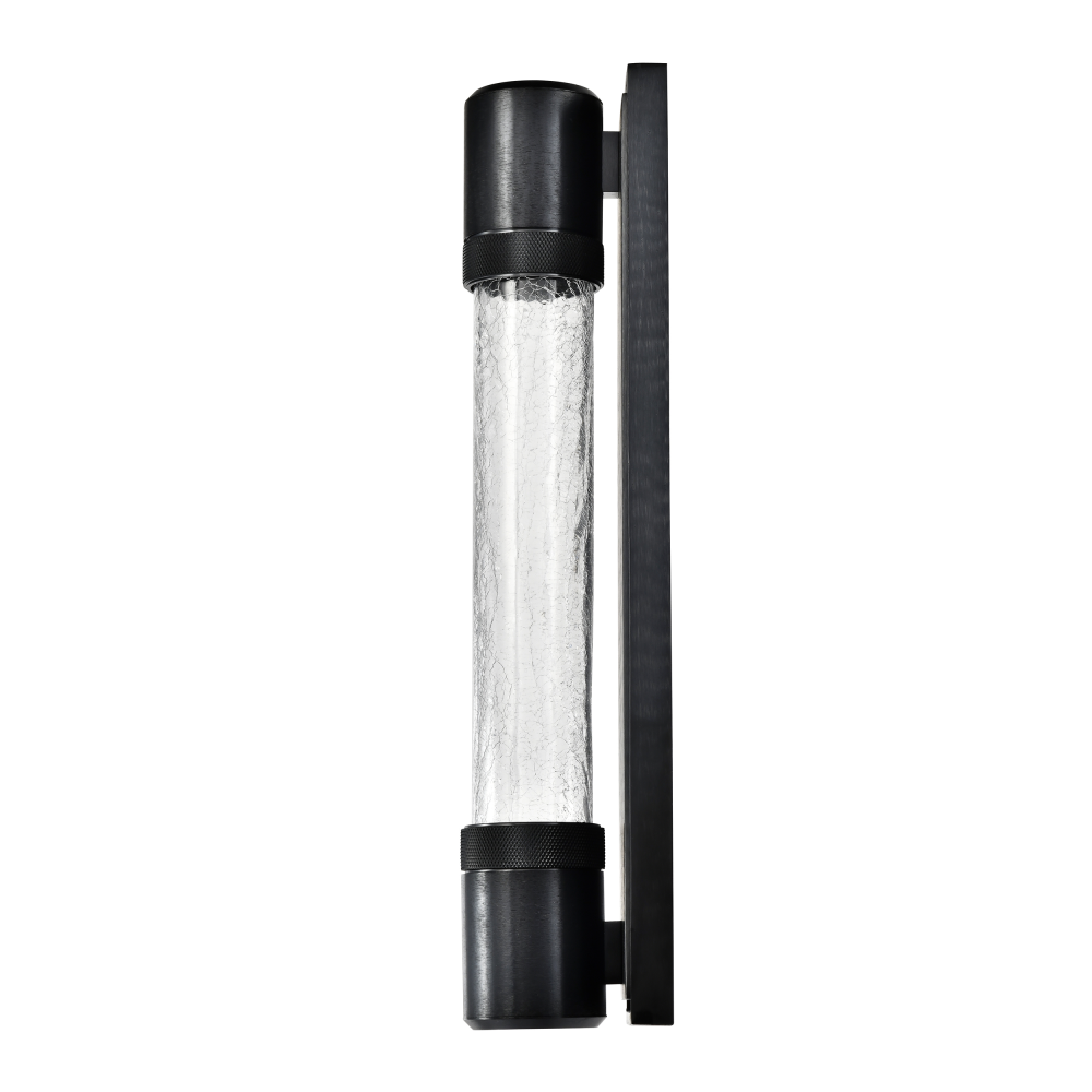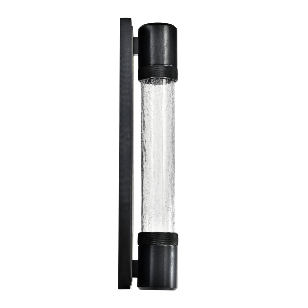 LED 3CCT Fuse Wall Sconce, 12" Crackled Glass and Satin Brushed Black Finish
