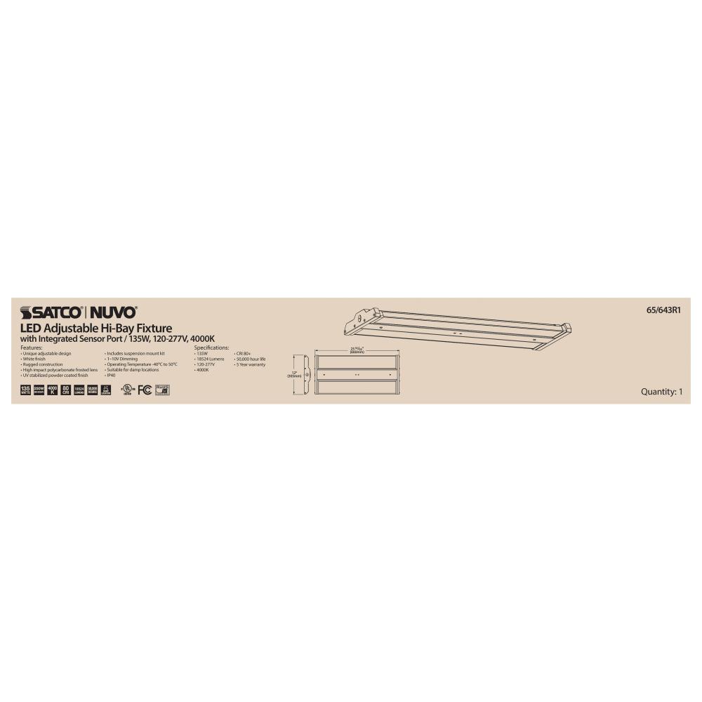 SATCO NUVO's 65-643R1 135 watt high bay LED fixture is a rugged lighting solution for commercial applications. Illuminate work areas and retail spaces with this durable, adjustable fixture. This dimmable fixture is sleek, functional, and delivers 50,00