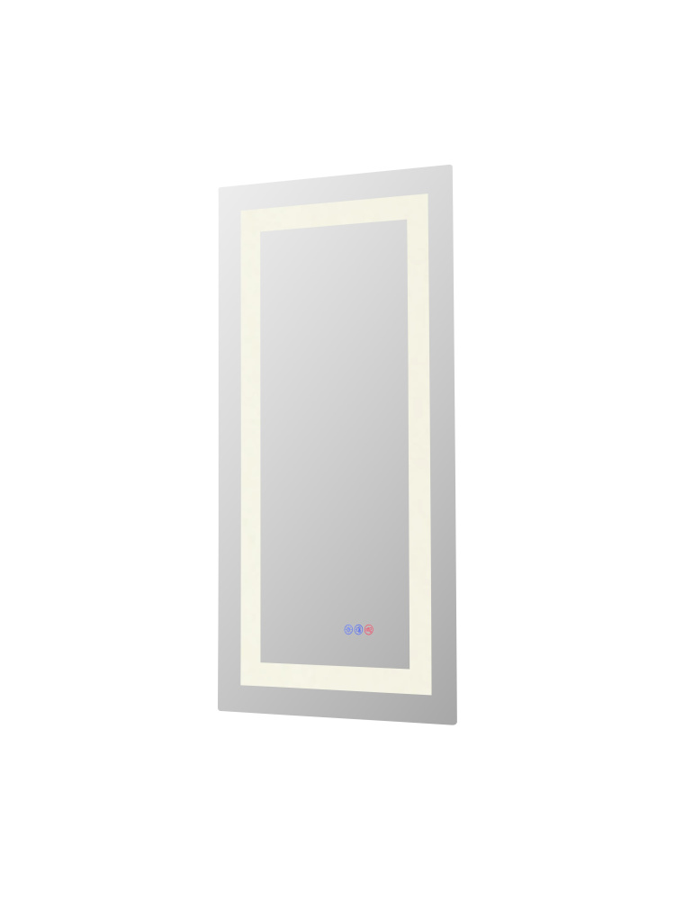 Redefine your daily routine with this ultra-modern LED mirror, designed to offer the perfect blend of style and functionality. Featuring both front and back illumination, this mirror provides a soft yet powerful glow that enhances your space with a luxurious ambiance. The adjustable color temperature (ranging from 3000K to 6400K) allows you to customize the warmth or coolness of your lighting, while the dimmable function lets you create the perfect brightness level. With a 90 CRI rating, this mirror ensures accurate color representation, making it perfect for grooming, makeup application, or daily self-care. The built-in defogger keeps your reflection clear and can be turned on or off at your convenience. Thanks to the touch sensor controls, adjusting your mirror's settings is effortless, and the memory function saves your last preferred settings for a seamless experience. Designed for versatile installation, this mirror can be hung vertically or horizontally using the included French cleats, making it a stunning and adaptable addition to any bathroom or vanity. It can be hardwired or connected to a wall switch for your convenience. Elevate your space with a mirror that not only reflects your image but also enhances your everyday routine with smart, modern lighting.