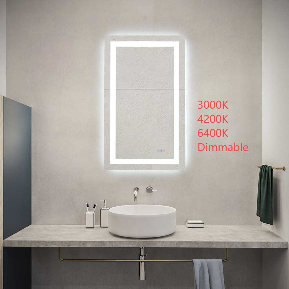 Redefine your daily routine with this ultra-modern LED mirror, designed to offer the perfect blend of style and functionality. Featuring both front and back illumination, this mirror provides a soft yet powerful glow that enhances your space with a luxurious ambiance. The adjustable color temperature (ranging from 3000K to 6400K) allows you to customize the warmth or coolness of your lighting, while the dimmable function lets you create the perfect brightness level. With a 90 CRI rating, this mirror ensures accurate color representation, making it perfect for grooming, makeup application, or daily self-care. The built-in defogger keeps your reflection clear and can be turned on or off at your convenience. Thanks to the touch sensor controls, adjusting your mirror's settings is effortless, and the memory function saves your last preferred settings for a seamless experience. Designed for versatile installation, this mirror can be hung vertically or horizontally using the included French cleats, making it a stunning and adaptable addition to any bathroom or vanity. It can be hardwired or connected to a wall switch for your convenience. Elevate your space with a mirror that not only reflects your image but also enhances your everyday routine with smart, modern lighting.