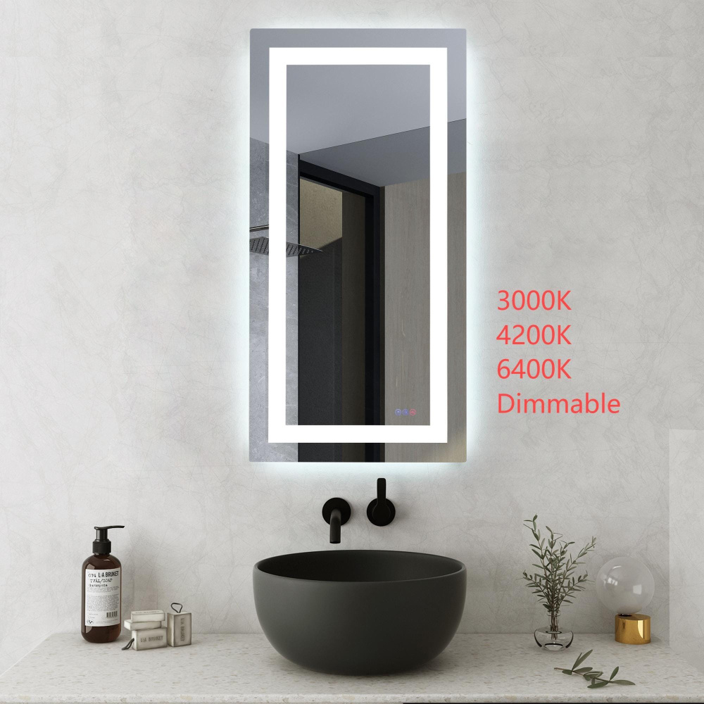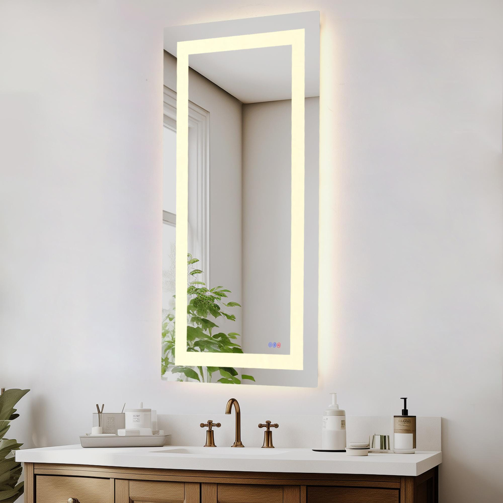 Redefine your daily routine with this ultra-modern LED mirror, designed to offer the perfect blend of style and functionality. Featuring both front and back illumination, this mirror provides a soft yet powerful glow that enhances your space with a luxurious ambiance. The adjustable color temperature (ranging from 3000K to 6400K) allows you to customize the warmth or coolness of your lighting, while the dimmable function lets you create the perfect brightness level. With a 90 CRI rating, this mirror ensures accurate color representation, making it perfect for grooming, makeup application, or daily self-care. The built-in defogger keeps your reflection clear and can be turned on or off at your convenience. Thanks to the touch sensor controls, adjusting your mirror's settings is effortless, and the memory function saves your last preferred settings for a seamless experience. Designed for versatile installation, this mirror can be hung vertically or horizontally using the included French cleats, making it a stunning and adaptable addition to any bathroom or vanity. It can be hardwired or connected to a wall switch for your convenience. Elevate your space with a mirror that not only reflects your image but also enhances your everyday routine with smart, modern lighting.