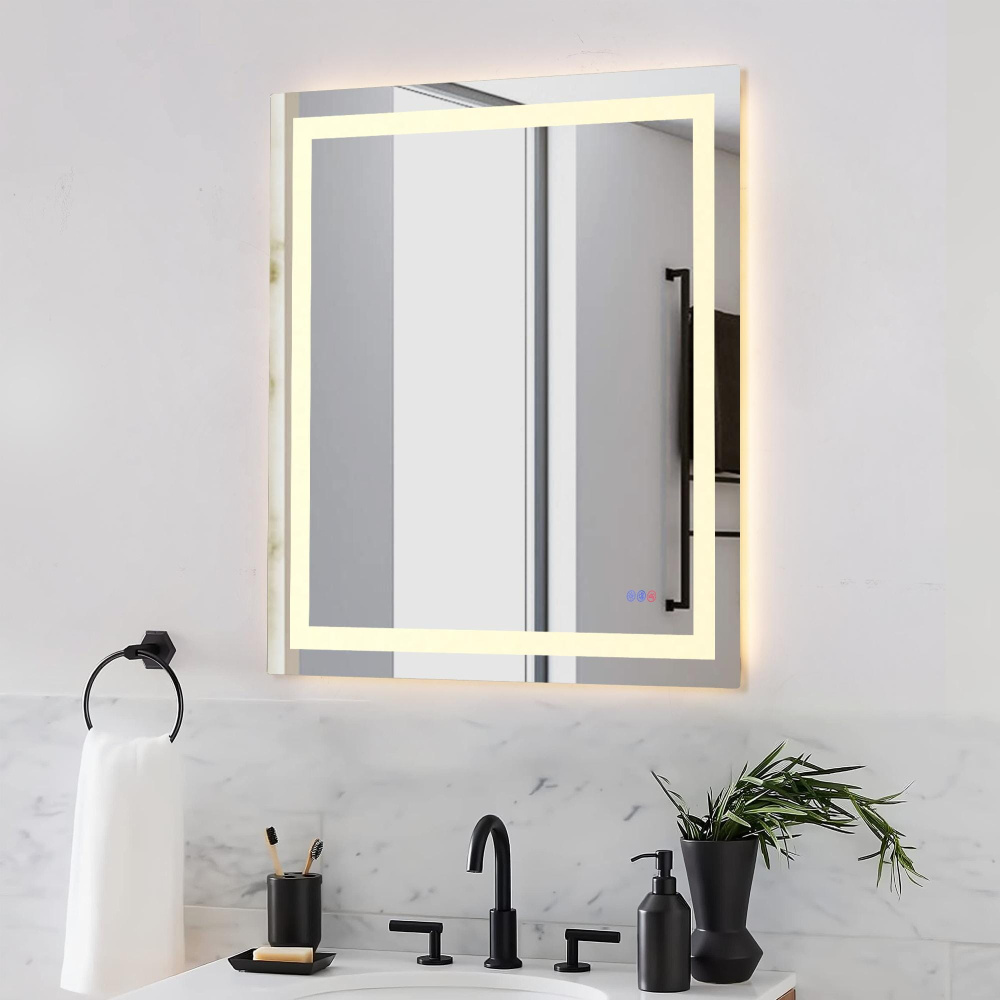 Redefine your daily routine with this ultra-modern LED mirror, designed to offer the perfect blend of style and functionality. Featuring both front and back illumination, this mirror provides a soft yet powerful glow that enhances your space with a luxurious ambiance. The adjustable color temperature (ranging from 3000K to 6400K) allows you to customize the warmth or coolness of your lighting, while the dimmable function lets you create the perfect brightness level. With a 90 CRI rating, this mirror ensures accurate color representation, making it perfect for grooming, makeup application, or daily self-care. The built-in defogger keeps your reflection clear and can be turned on or off at your convenience. Thanks to the touch sensor controls, adjusting your mirror's settings is effortless, and the memory function saves your last preferred settings for a seamless experience. Designed for versatile installation, this mirror can be hung vertically or horizontally using the included French cleats, making it a stunning and adaptable addition to any bathroom or vanity. It can be hardwired or connected to a wall switch for your convenience. Elevate your space with a mirror that not only reflects your image but also enhances your everyday routine with smart, modern lighting.