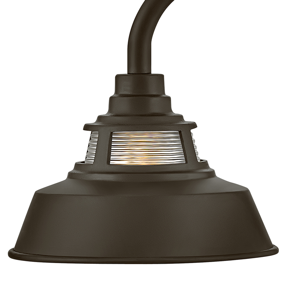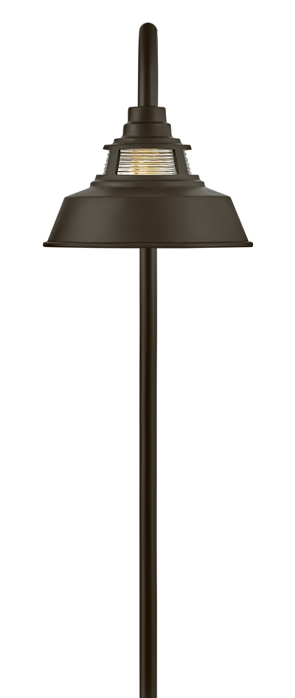 Made of sturdy, solid aluminum, Troyer's warm and inviting heritage details and timeless finishes create a classic outdoor silhouette. Combining farmhouse and industrial, this path light features touches like the trademark gooseneck that suspends the rustic shade and a unique ribbed glass accent at the top for additional light. This low-voltage path light includes a long-lasting LED bulb that will light up walkways and other outdoor living spaces for safety and security. Available in two classic finishes - Black or Oil Rubbed Bronze.