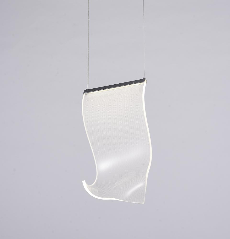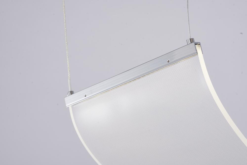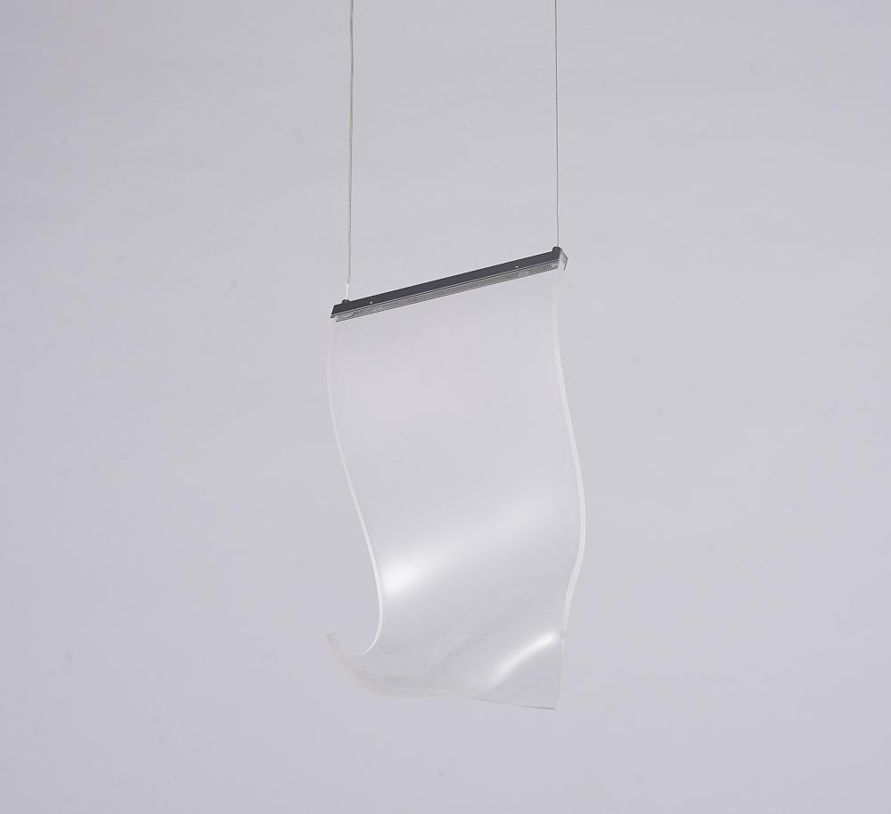 This pendant is an acrylic crumbled sheet pendant light. It comes with chrome hardware. The cord length of 72 inches is provided and the cord length is adjustable.