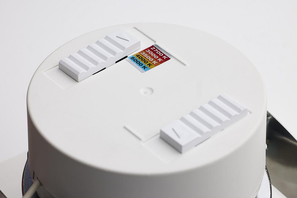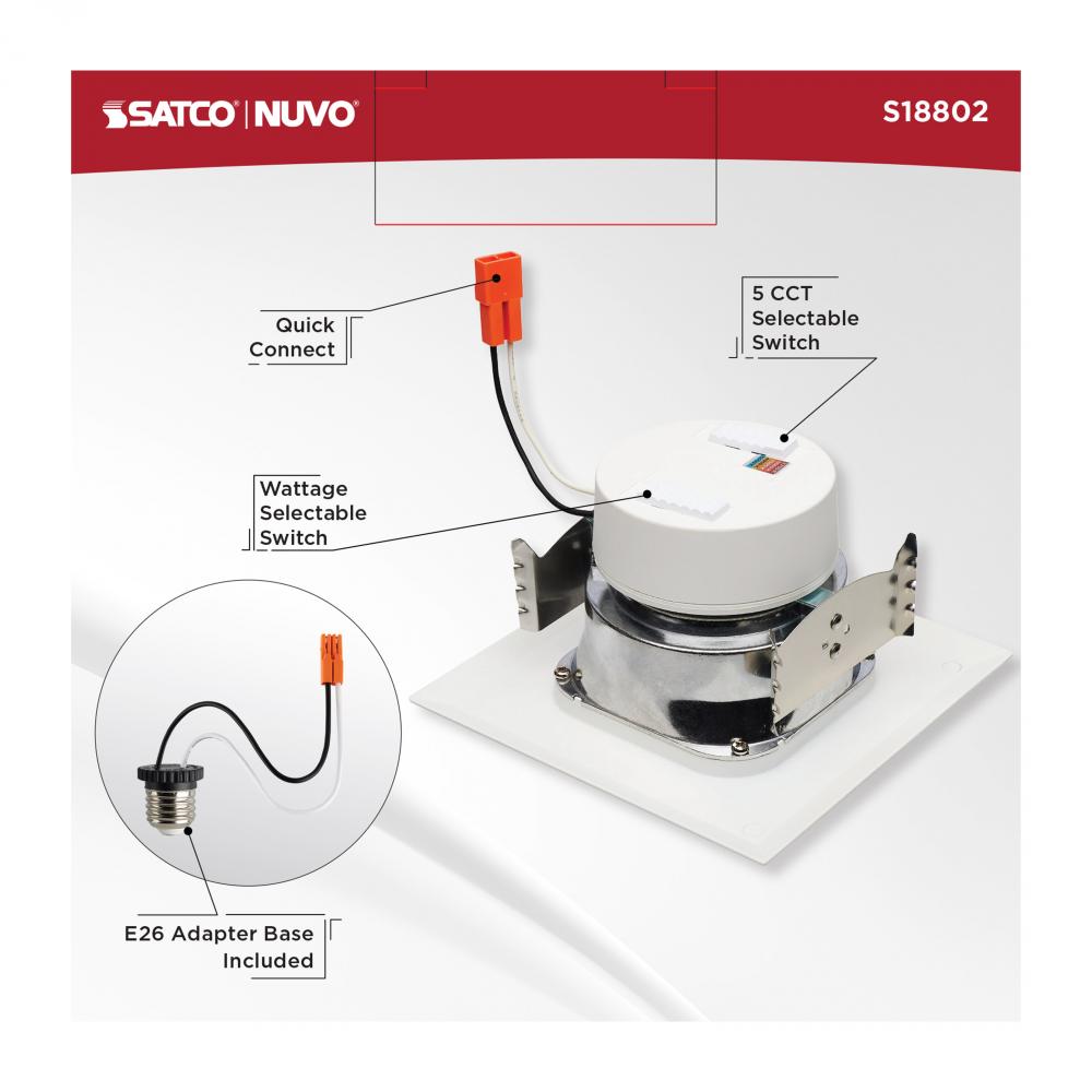 SATCO NUVO's new S18802, LED Field Selectable Retrofit Downlight, is the effortless solution for upgrading recessed lighting in your space. With two on-unit switches, the adjustment of both the input wattage and color temperature is a breeze and allows