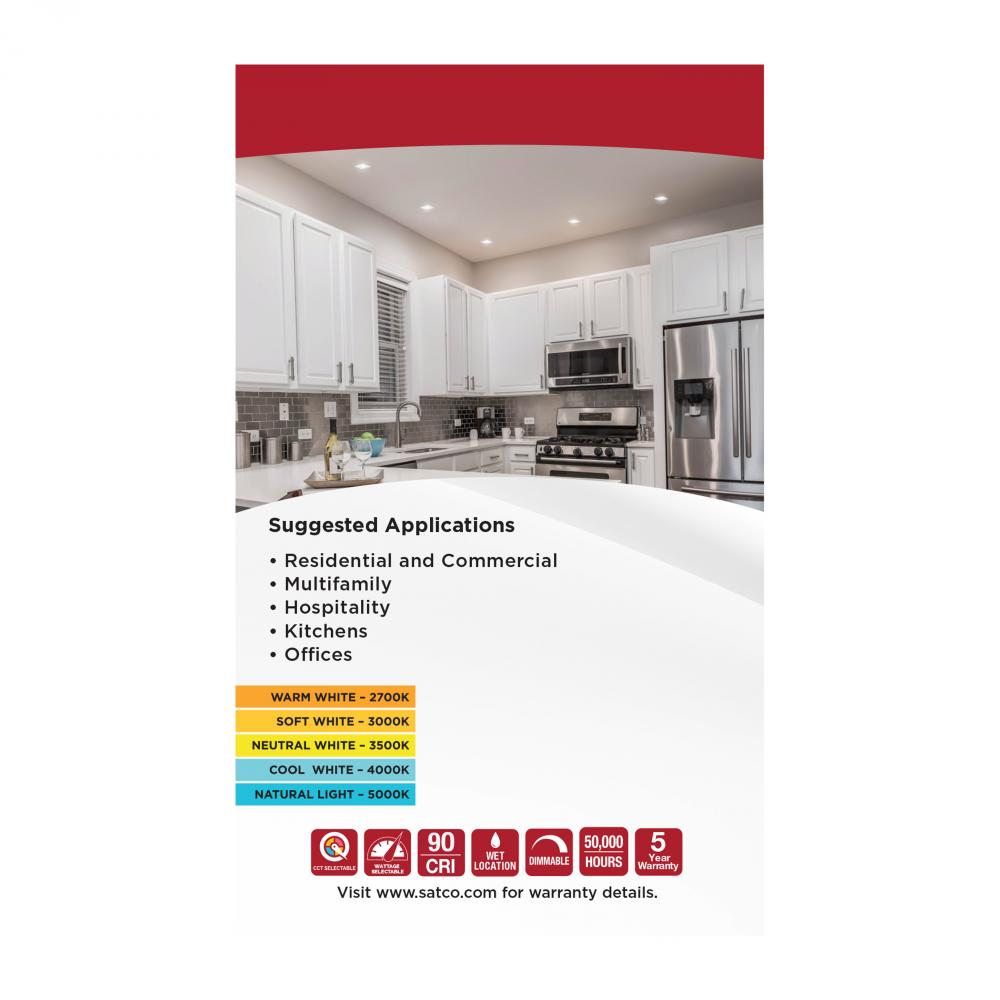 SATCO NUVO's LED Field Selectable Retrofit Downlights are the effortless solution for upgrading recessed lighting in your space. With two on-unit switches, the adjustment of both the input wattage and color temperature is a breeze and allows for the pe