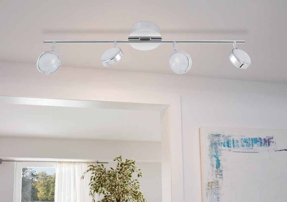 4 LT LED Fixed Track Light w/ Chrome Finish & Acrylic Crystalized Shades