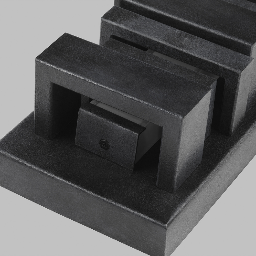 The Ledgend one light outdoor wall fixture in dark weathered zinc creates a warm and inviting welcome presentation for your home's exterior. The Ledgend outdoor light wall sconces by are modern and dramatic, making a significant design statement as visitors reach the front door. Energy efficient and long-lasting LEDs direct light forward through off-set openings inspired by stacked flagstone, as well as shining up and down. Made of Cast Aluminum, the fixture has exceptional durability to withstand the harshest elements. With a Dark Weathered Zinc finish, the assortment includes 5", 18" 26" and 34" LED outdoor wall sconces.