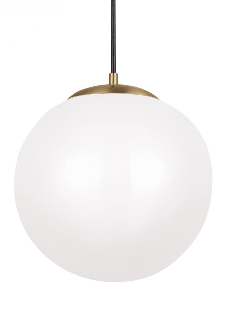The Leo - Hanging Globe one light indoor pendant in satin brass provides abundant light to your home, while adding style and interest. While hanging globes are one of lighting's hottest trends, Sea Gull's timeless Leo Collection has been around for 50 years! Constantly evolving with the times, these classic pendants are now offered with NEW Clear Seeded glass and in Satin Aluminum finish. Adjustable cloth cords allow for unlimited variations of hanging heights. All glass softly diffuse the light, each fixture comes with 54” of cuttable cord to customize the installation exactly to your needs. Easily convert every piece in the collection to LED by purchasing LED replacement lamps sold separately. All fixtures are qualified and California Title 24 compliant and damp rated for use in sheltered, damp environments like bathrooms, covered patios or porches.