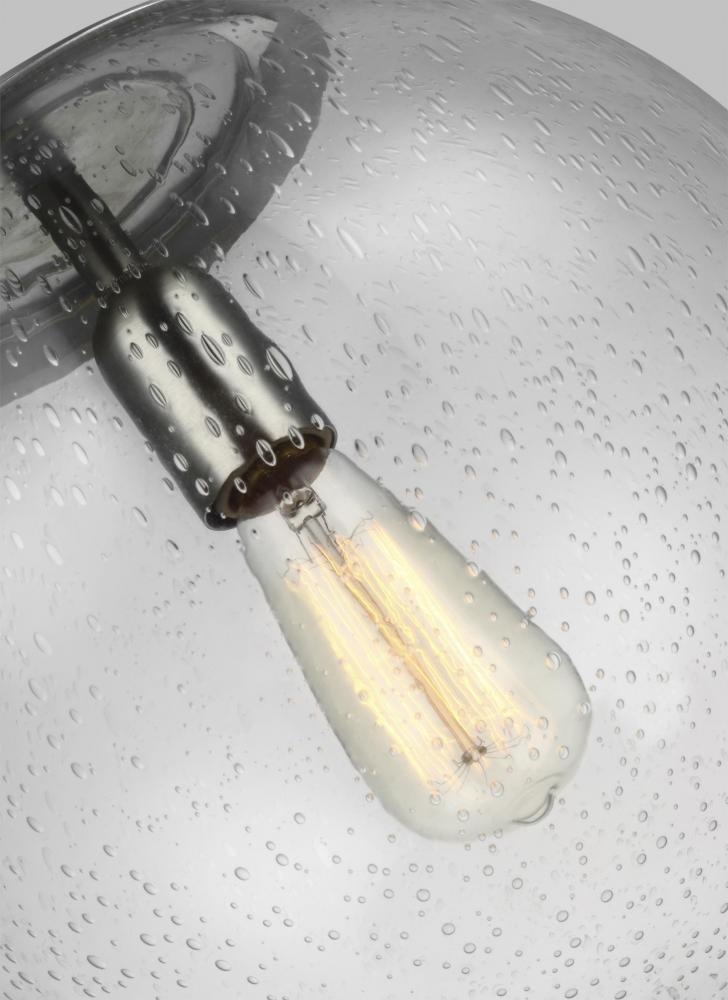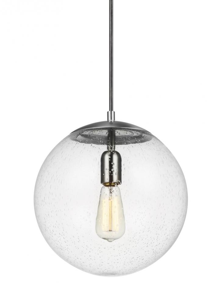 The Leo - Hanging Globe one light indoor pendant in satin aluminum enhances the beauty of your home with ample light and style to match today's trends. While hanging globes are one of lighting's hottest trends, Sea Gull's timeless Leo Collection has been around for 50 years! Constantly evolving with the times, these classic pendants are now offered with NEW Clear Seeded glass and in Satin Aluminum finish. Adjustable cloth cords allow for unlimited variations of hanging heights. All glass softly diffuse the light, each fixture comes with 54†of cuttable cord to customize the installation exactly to your needs. Easily convert every piece in the collection to LED by purchasing LED replacement lamps sold separately. All fixtures are qualified and California Title 24 compliant and damp rated for use in sheltered, damp environments like bathrooms, covered patios or porches.