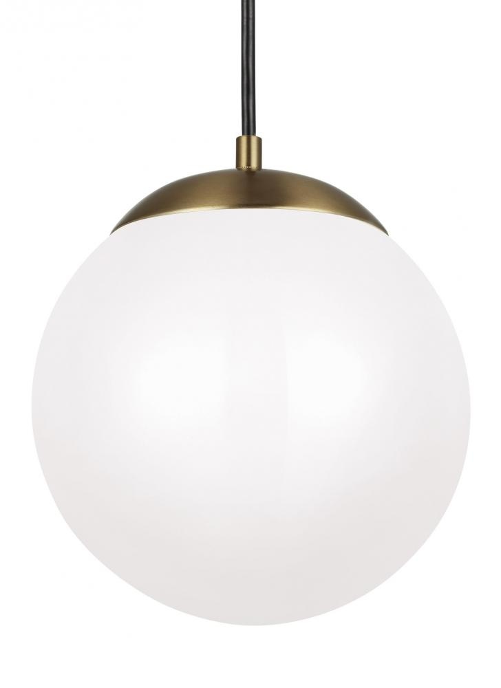 The Leo - Hanging Globe one light indoor pendant in satin brass provides abundant light to your home, while adding style and interest. While hanging globes are one of lighting's hottest trends, Sea Gull's timeless Leo Collection has been around for 50 years! Constantly evolving with the times, these classic pendants are now offered with NEW Clear Seeded glass and in Satin Aluminum finish. Adjustable cloth cords allow for unlimited variations of hanging heights. All glass softly diffuse the light, each fixture comes with 54†of cuttable cord to customize the installation exactly to your needs. Easily convert every piece in the collection to LED by purchasing LED replacement lamps sold separately. All fixtures are qualified and California Title 24 compliant and damp rated for use in sheltered, damp environments like bathrooms, covered patios or porches.