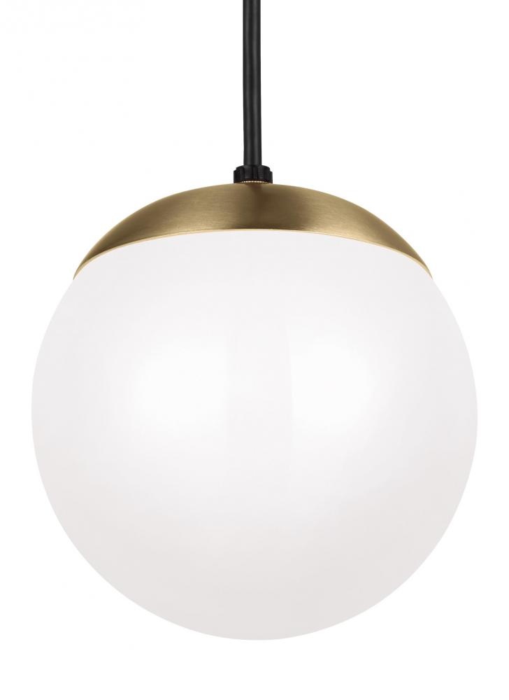 The Leo - Hanging Globe one light indoor pendant in satin brass is an ENERGY STAR® qualified lighting fixture that uses LED bulbs to save you both time and money. While hanging globes are one of lighting's hottest trends, Sea Gull's timeless Leo Collection has been around for 50 years! Constantly evolving with the times, these classic pendants are now offered with NEW Clear Seeded glass and in Satin Aluminum finish. Adjustable cloth cords allow for unlimited variations of hanging heights. All glass softly diffuse the light, each fixture comes with 54” of cuttable cord to customize the installation exactly to your needs. Easily convert every piece in the collection to LED by purchasing LED replacement lamps sold separately. All fixtures are qualified and California Title 24 compliant and damp rated for use in sheltered, damp environments like bathrooms, covered patios or porches.