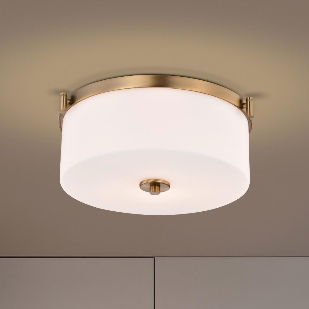 Liam; 3 Light Flush Mount; Burnished Brass; White Opal Glass