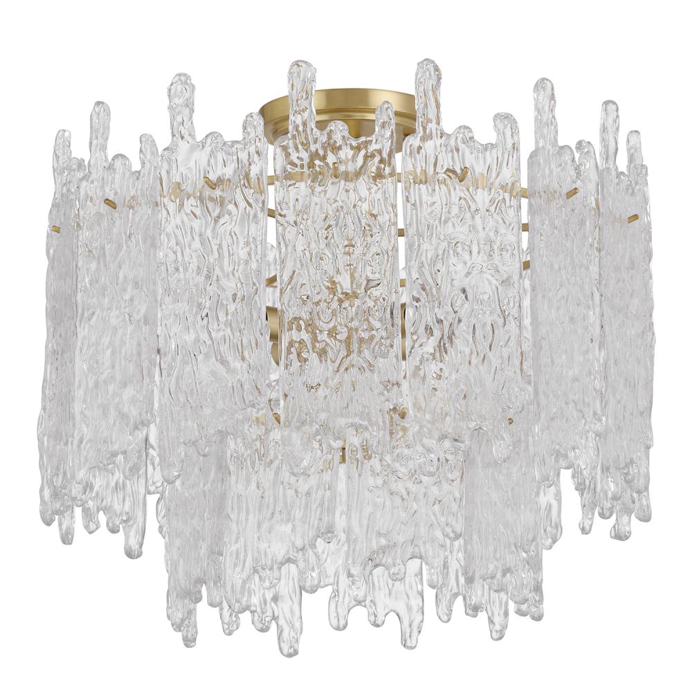 The Ackerly Collection showcases stunning ice glass, a textured material that resembles frozen or cracked ice. Its frosted, crystalline surface uniquely scatters light, producing a soft, diffused glow. This organic, sculptural effect adds a modern yet slightly retro touch to the design. The Ackerly Collection combines elegance with an artistic, edgy aesthetic, making it a standout in any space.