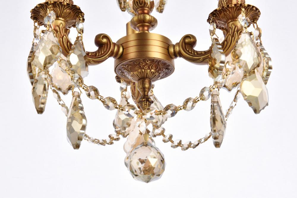 Lillie collection hanging fixtures radiate glamor and sparkle in a compact design that includes an attractive etched base in dark bronze, French gold, and pewter. Undulating branches leading to three or four candelabra bulbs (not included) are highlighted by hanging pendeloque crystals. Additional crystal strands create a circular wall of light at the bottom of this sophisticated design, accented by a lovely crystal bead at the bottom. Create a stunning focal point in your dining room, living room, bedroom, bathroom, and entryway with a Lillie collection hanging fixture. Elegant-cut, royal-cut, Swarovski Elements, or Swarovski Spectra crystal trims are available in golden teak and crystal to match your décor.