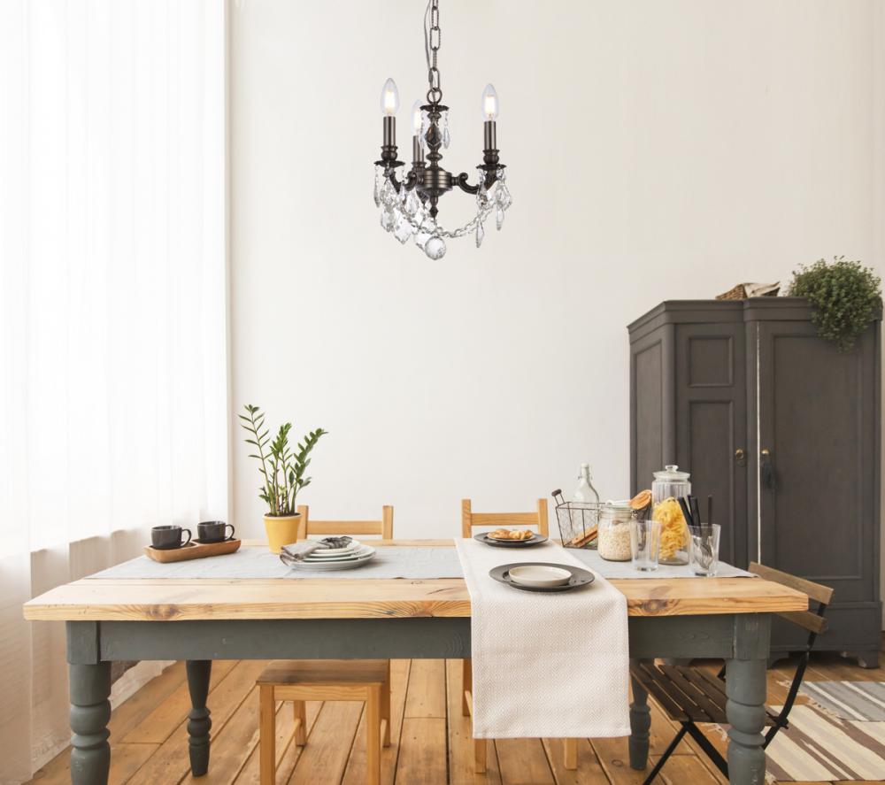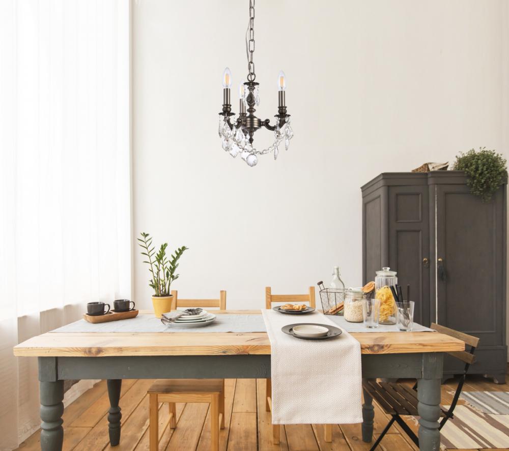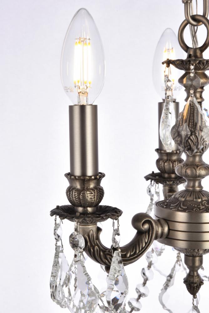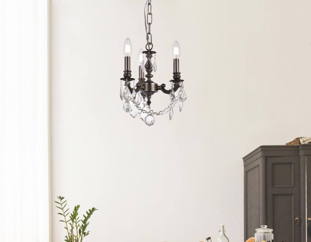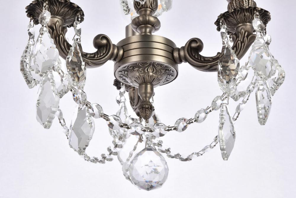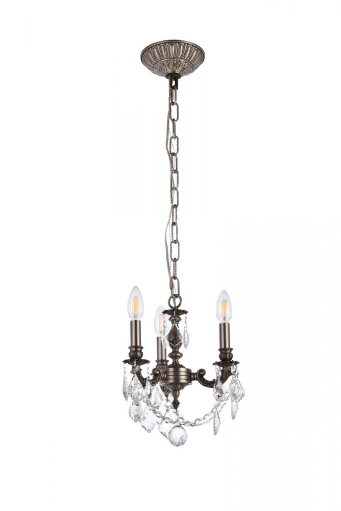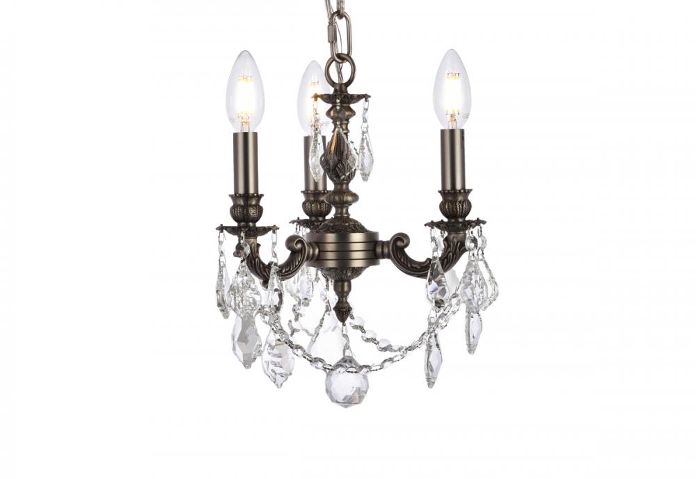 Lillie collection hanging fixtures radiate glamor and sparkle in a compact design that includes an attractive etched base in dark bronze, French gold, and pewter. Undulating branches leading to three or four candelabra bulbs (not included) are highlighted by hanging pendeloque crystals. Additional crystal strands create a circular wall of light at the bottom of this sophisticated design, accented by a lovely crystal bead at the bottom. Create a stunning focal point in your dining room, living room, bedroom, bathroom, and entryway with a Lillie collection hanging fixture. Elegant-cut, royal-cut, Swarovski Elements, or Swarovski Spectra crystal trims are available in golden teak and crystal to match your décor.