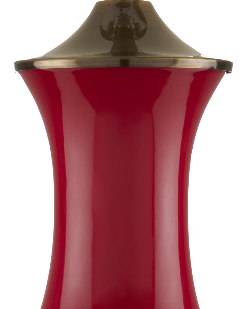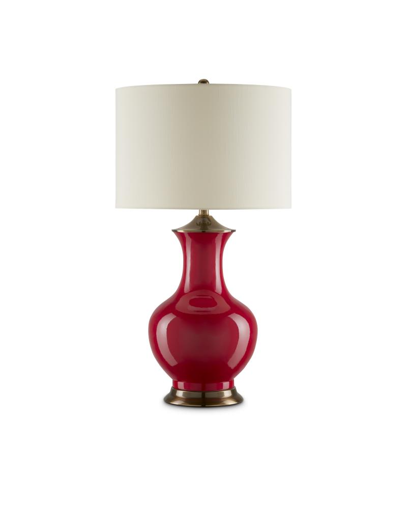 Serenity has a profile in the Lilou Red Table Lamp with its lovely vase-like profile. Made of porcelain, the red surface has a luster to it for which this time-honored material is known. The depth of the red is luscious and warm, complemented by the metal hardware and base in an antique brass finish. A light element to the composition is the eggshell shantung drum shade, which is fastened in place with an antique brass finial. The Lilou is one of our most popular designs.
