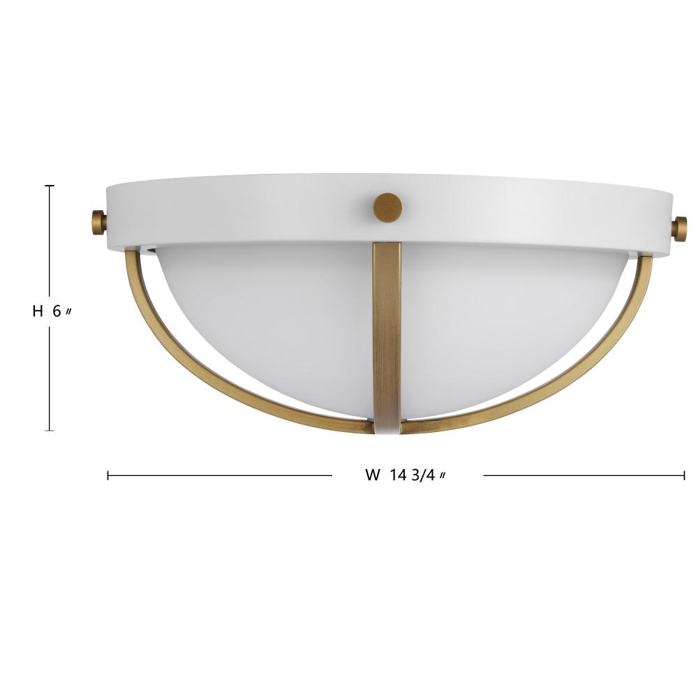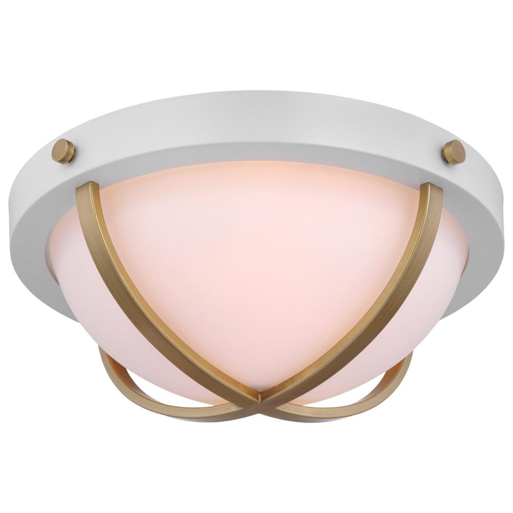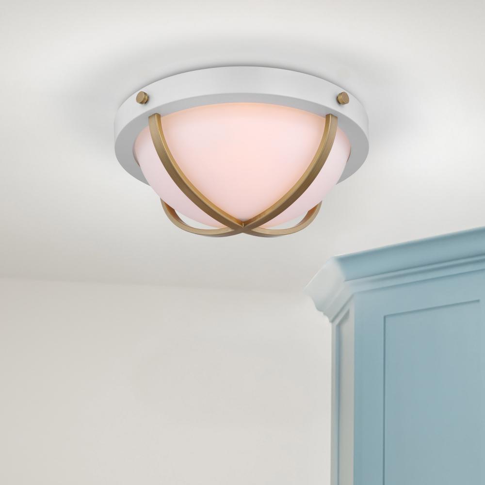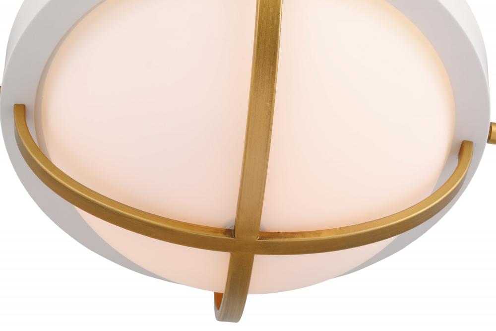 The striking Lincoln 60-7662 flush mount was inspired by an armillary sphere, consisting of a framework of elegant rings. Broad, circular bands surround the orb, and knob details in a brass hue enhance the opal glass and matte white finish for a prominent,