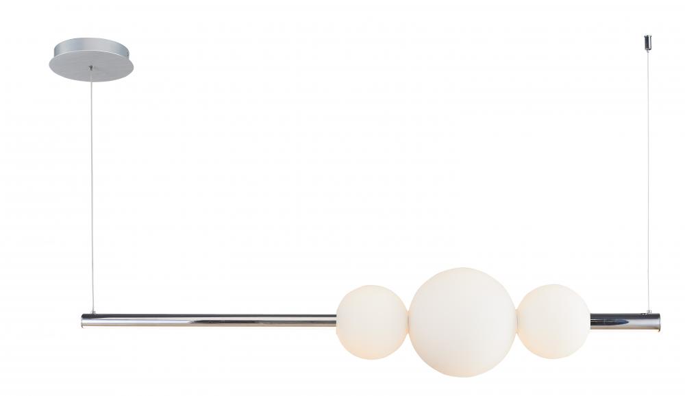 Linear Bar Pendant with Up-Down Illumination with 3 Opal Glass Orb's
