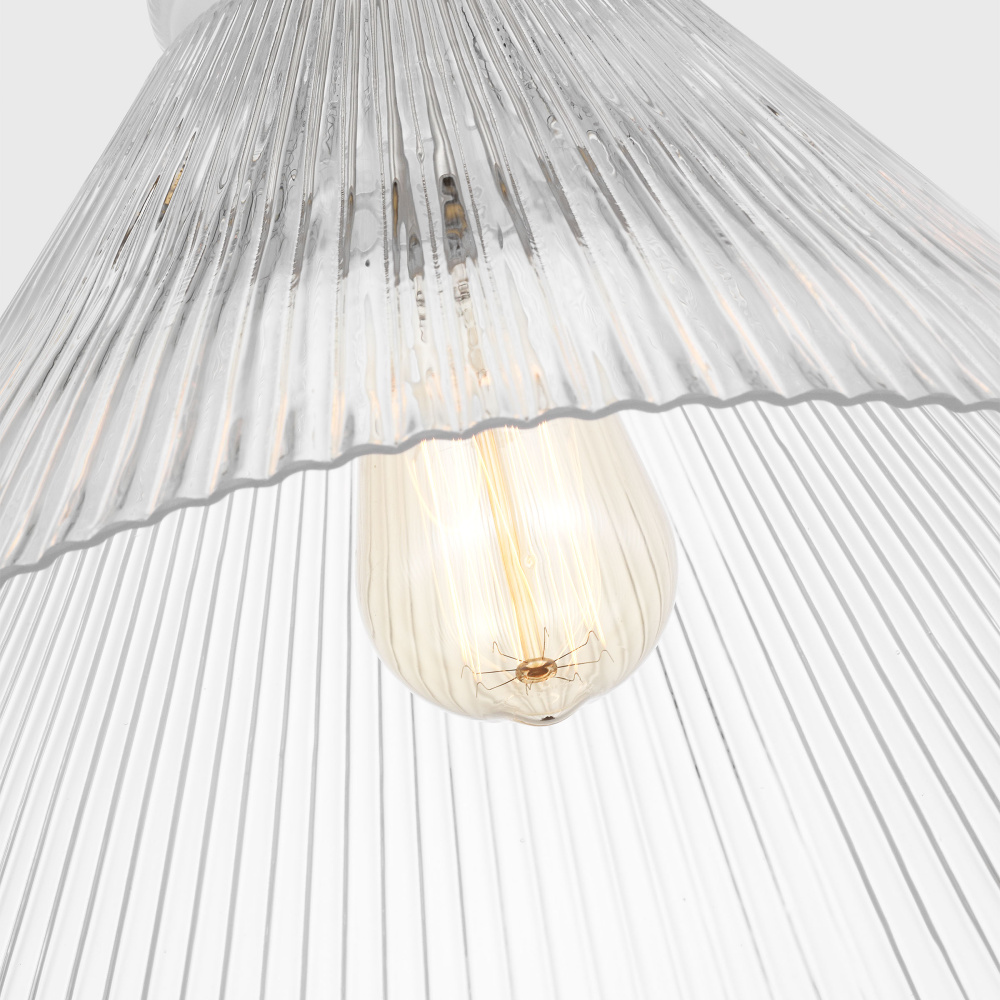 With a delicate nod to Art Deco design, the Liouet series by Drew & Jonathan highlights ribbed glass in simple forms. The overall ribbed texture is complemented by a band of etched glass, as well as metal details, lending a modern touch. This pendant light will become the centerpiece of any kitchen when hung over the kitchen island.