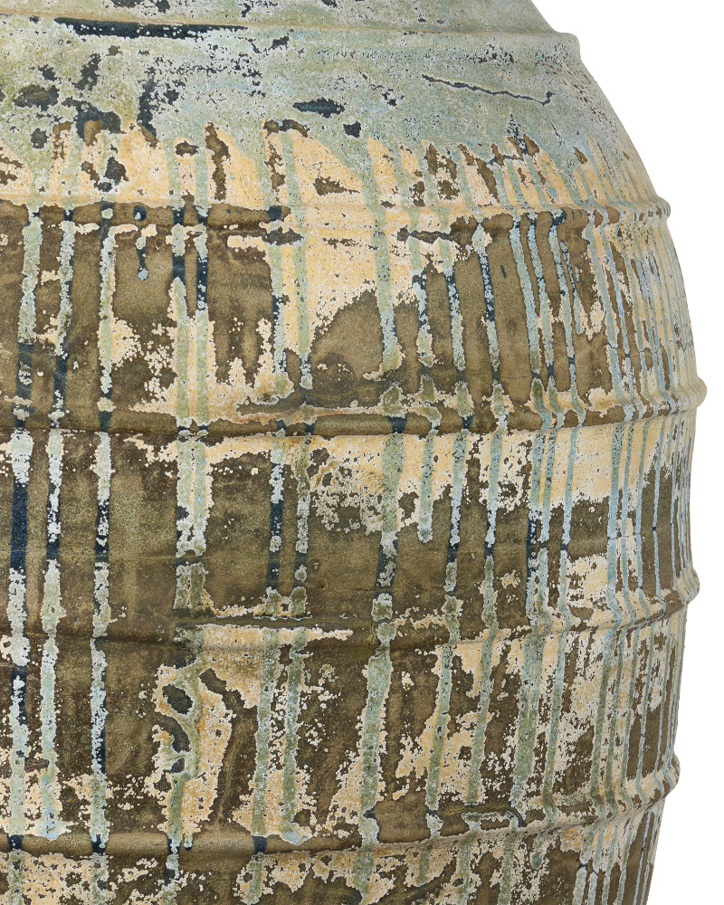 Bring the garden indoors (or enhance outdoor spaces) with the Lipari Extra Large Antique Blue Drip Urn and its strong Mediterranean vibe. Inspired by classic shapes that have been staples in Italian gardens for centuries, this aged white planter has pitting in its terracotta surface to create the effect of a true antique.