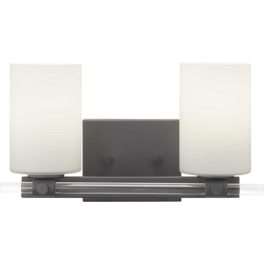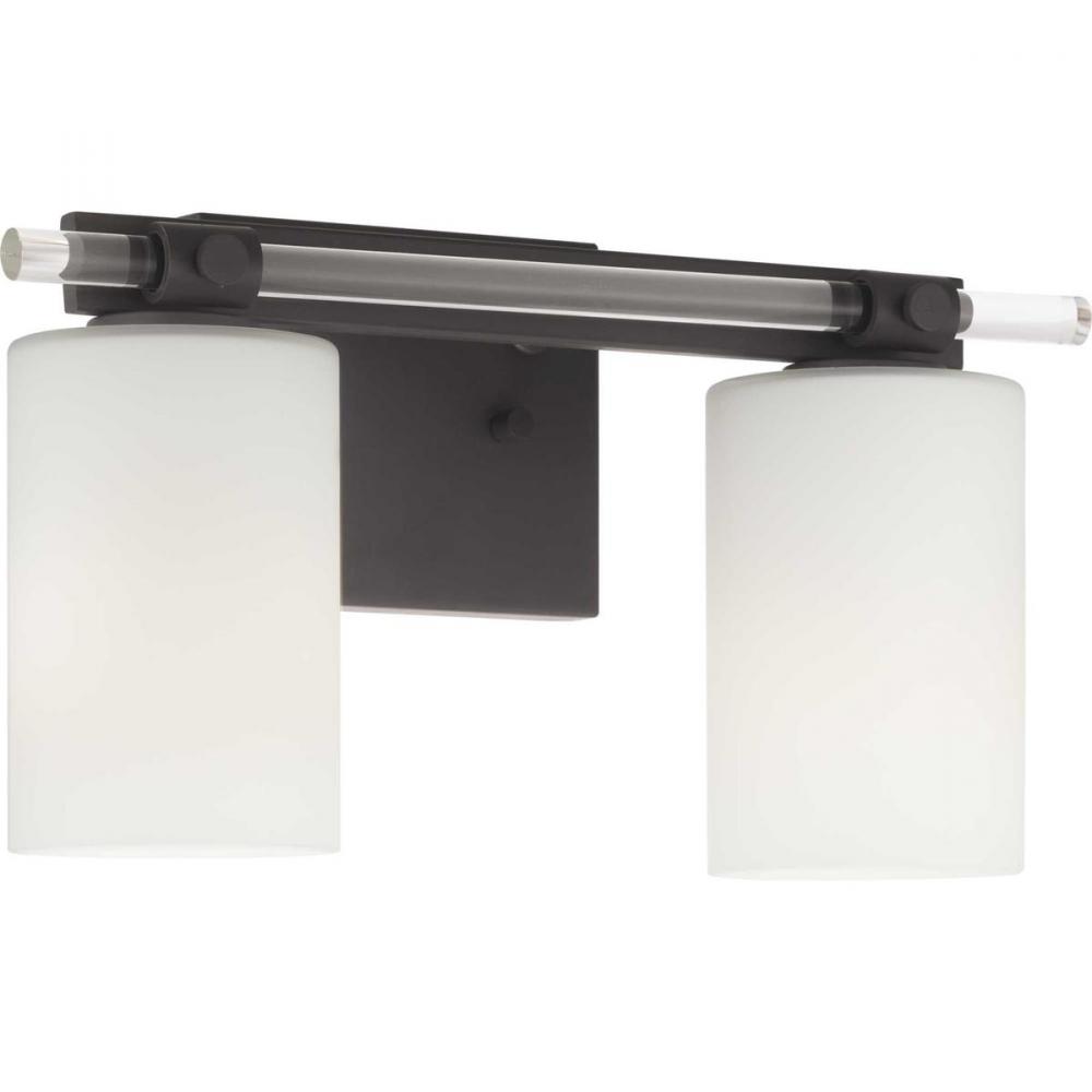 Enjoy high status with a two-light bath and vanity in the Lisbon Collection that is full of femininity, gleam and shine. Etched opal glass shades sit atop an elegant K9 glass rod, highlighted with a Black finish. The highly polished design style complements both Modern and Luxe interiors – and can be mounted up or down.