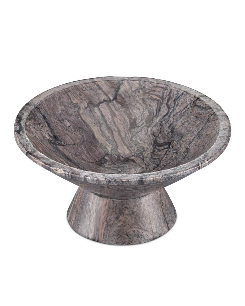 The Lubo Breccia Large Bowl is made of Breccia marble, which has a swirling personality as haunting as the milky way at night. The black footed bowl will be a chameleon in an interior, as it will be just as fitting for holding decorative objects in a main living space as it will be for displaying fruit on a kitchen island. The surfaces will vary from piece to piece.